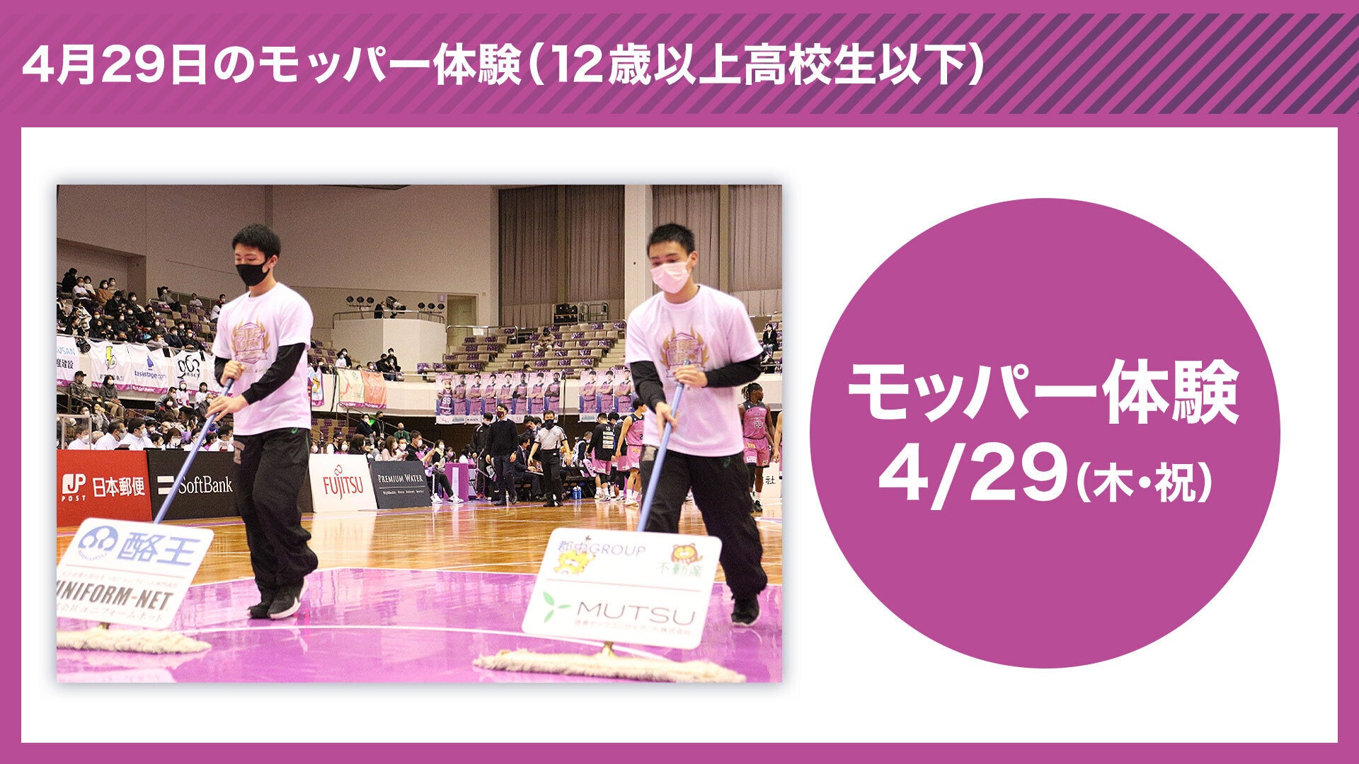 モッパー体験に加えて、試合前の選手シューティング時のお手伝いも行なえる貴重な体験となります。