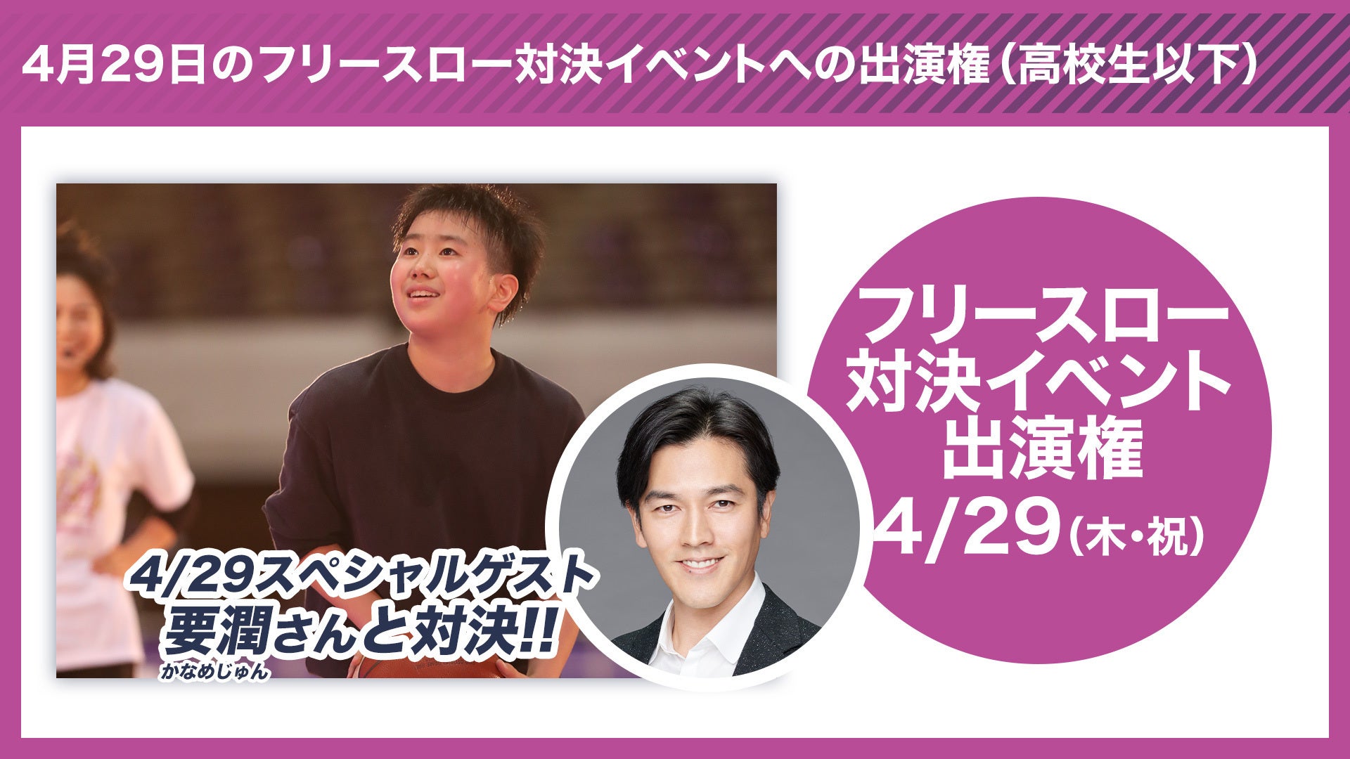 ★29日のフリースロー対決イベントへの出演権(高校生以下)