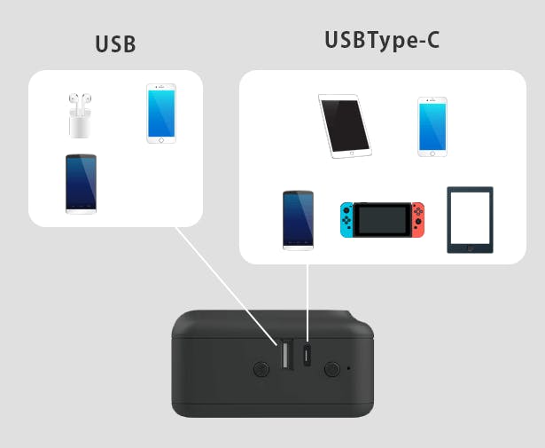 USB&USB-Cの出力端子で同時に2台充電出来ます。コンパクトサイズなので持ち運びも楽々!様々なデバイスに対応できます。出先で充電が切れてしまってもこれさえあればもう困る事はありません。