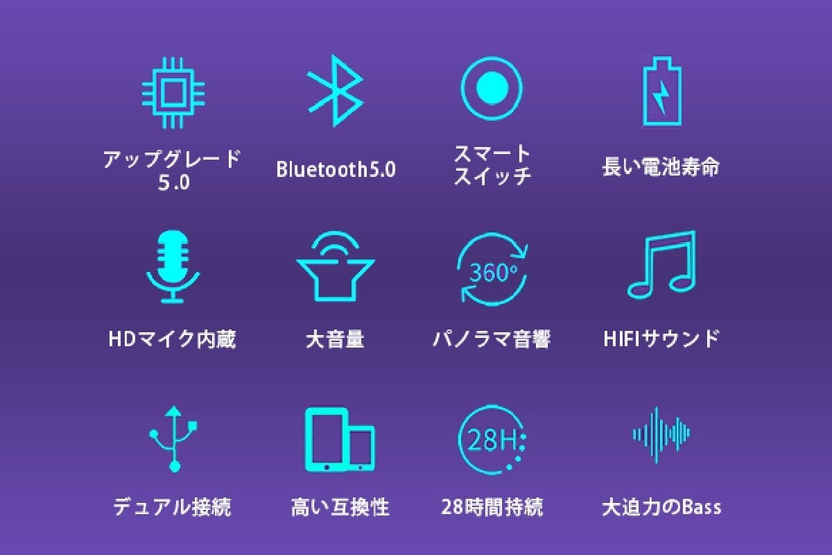 同時に2台まで接続できるオートコネクト機能付きBluetooth5.0!!コンパクトなサイズながらもサウンドはパワフルなHI-FIサウンド!家事をしながら自宅で使用したり、出張やBBQ等の野外でも十分に活用いただけます。