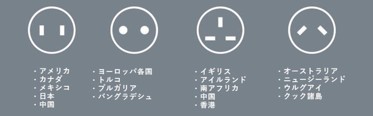 ※一般的に上記5種類のコンセントで150カ国以上対応すると言われていますが、同じ国でも地域やホテルの建設時期によってタイプが異なりますので事前に旅行先のホテルにどのタイプか確認してからご使用下さい。