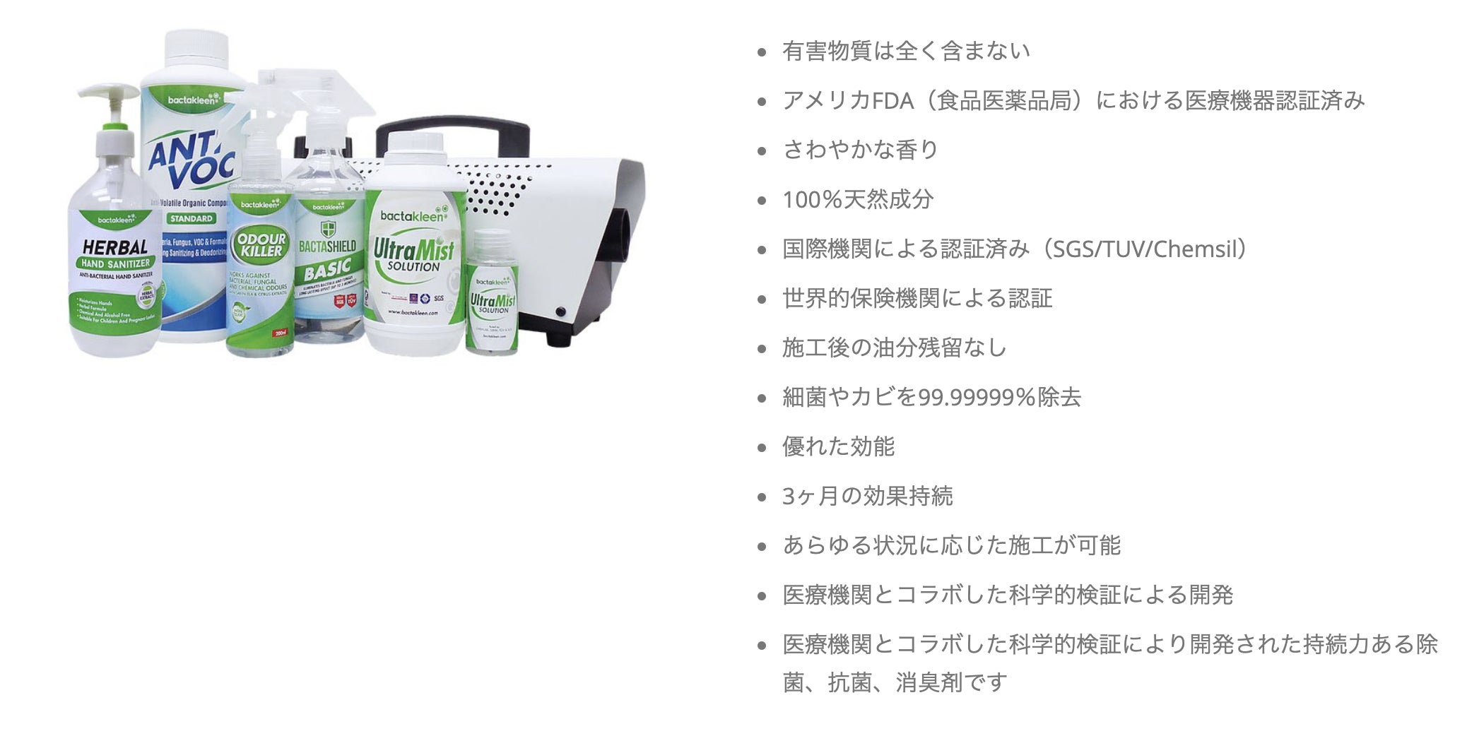 人体に無害な100%天然由来の成分の溶液をバルサン式に室内全体に噴射して、