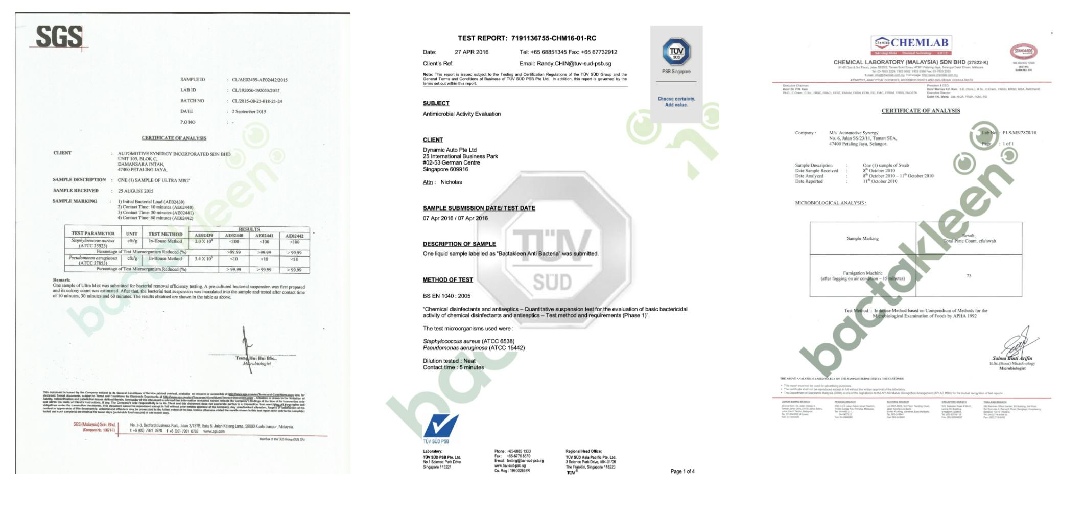 国際安全検査機関SGS、TUV、Chemlabにて安全性を証明されている溶液を利用してサービス施工を実施します。