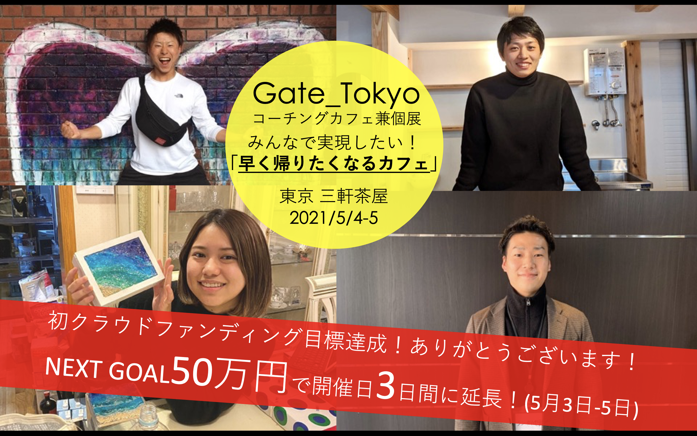 2021/05/06 08:14こんにちは!Gate_Tokyoメンバー一同より開催の報告と御礼をさせていただきます。2021年5月2日-4日の3日間。Gate_Tokyoを開催することができました!心の底から、支援くださった方、応援してくださった方、そして、来店してくださった方に感謝申し上げます。本当に最高のわたしたちが思い描いていた以上の「空間」になりました。そして、来店してくださったみなさまが会話をしている姿、帰るときの表情をみて、「早く帰りたくなるカフェ」をまさに体現できたと確信しています!そして、わたしたちがこのカフェを通して、体現したかった、「コーチング」×「カフェ」×「個展」を組み合わせたカフェGate_Tokyoを期間限定で開催したい!みんなが今まで踏み出せなかった大きな一歩を踏み出すきっかけになりたい!「コーチング」「カフェ」「個展」のどれかがあなたの日常を豊かになるきっかけになってほしい!帰るときには「前向きになって何か行動したい!」という想いになってほしい!来てくれた人が「早く帰りたくなるカフェ」を実現します。これを実現できたかどうかは支援くださったあなた、来てくださった方々一人ひとりが感じてくれていると思います。何者でもない私たち4人が1月10日の発表をきっかけに集まり、4ヶ月の短期間でクラウドファンディングを実施し、50万円の支援をいただき、開催することができました。だからこそ、言えます。今まで踏み出せなかった1歩を踏み出してください。本気で行動し、考えれば絶対に実現できます!私たちがそれを証明しました。そして、私たちはまだまだ挑戦を続けていきます。渋澤さんがメンバーに加わり、さらに新しい挑戦をします。クラウドファンディングを実施する際はぜひ応援とご支援をお願い致します。私たちはあなたが前向きになり、今まで踏み出したいけど踏み出せなかった1歩を踏み出すきっかけになり続けます。最後に、今回のカフェにコラボをした作品「孤独な怪獣」の渋澤さん、ロゴデザインの妙見さん、NextArkの植木さん、カフェサボローゾの濱崎さん本当にありがとうございました。ここまで一緒に走ってくださり本当にありがとうございました!!!Gate_Tokyoプロジェクトメンバー西田悟視新家颯松原彩香池田直樹 もっと見る