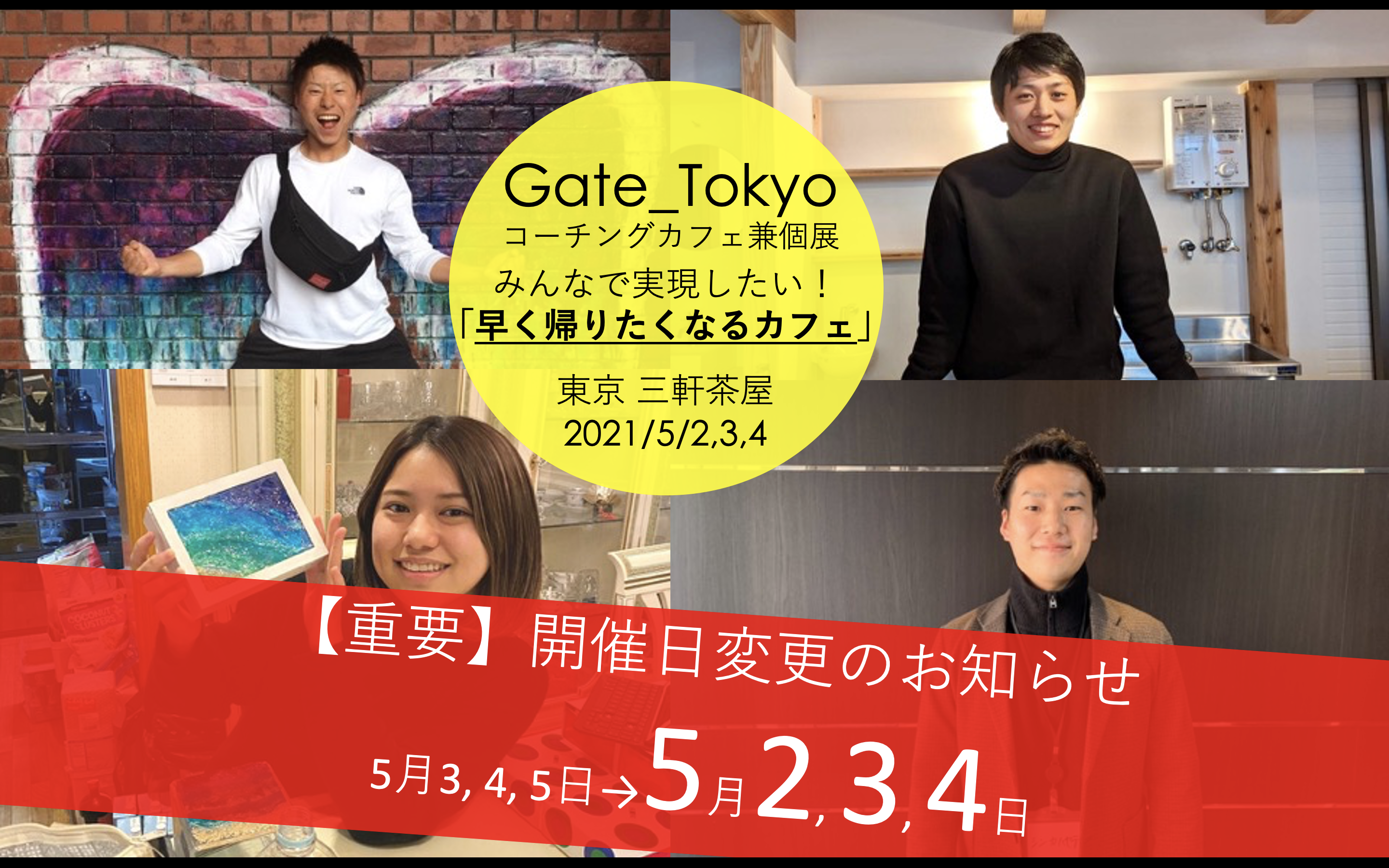 2021/04/07 07:56【重要】【コーチングカフェ兼個展開催日変更のお知らせ】こんにちは。コーチングカフェ兼個展プロジェクトリーダーの西田悟視と申します。クラウドファンディング終了後もたくさんの応援の言葉をかけていただき、本当にありがとうございます。現在はリターンの準備をしております。順次、リターンをお渡しできるよう手続きを進めていきますのでもう少々お待ちください。今回、重要なお知らせがございます。Gate_Tokyoを開催するためにspacemarket様の空きスペースを使用いたします。空きスペースの確保をしていたのですが、手続き上で問題が発生し、開催日を変更しなければいけなくなりました。変更前2021年5月3日(月), 4日(火), 5日(水)↓↓↓↓変更後2021年5月2日(日), 3日(月), 4日(火)営業時間:10時ー18時開催日数は3日間で変更はございませんが、5日しか来れないという方もおられるかもしれません。この度はこのような事態を発生させてしまい大変申し訳ございません。重ねて、心よりお詫び申し上げます。○クラウドファンディングのリターン○・ドリンク引換券(500円)・ドリンク+ケーキ引換券(1000円)・【緊急追加リターン】Veganグルテンフリータルトとお飲み物引換券(1200円)の3点に関して、有効期限を「2021年5月2日(日), 3日(月), 4日(火)のみ有効」に変更致します。また、5月5日のみご都合がよく、上記3点のリターンを支援してくださった方で連絡をいただいた方のみ返金対応をさせていただきます。その場合、4月15日までに、以下のメールアドレスにご連絡をお願いいたします。それ以外の理由での返金対応には応じかねますのでご了承ください。gatetokyo0504@gmail.comメールを頂いた場合、クラウドファンディングのサイトより個別に連絡させて頂き、本人確認を致します。どんなことでも山あり谷ありですが、私たちが提供する価値に変更はありません。幸いなことに、日曜日に開催できることになりました。もともとGWが休みではないので、日曜日ならこれますという声を頂けましたら幸いです。今後ともどうぞよろしくお願いいたします。Gate_Tokyoプロジェクトリーダー西田 悟視 もっと見る