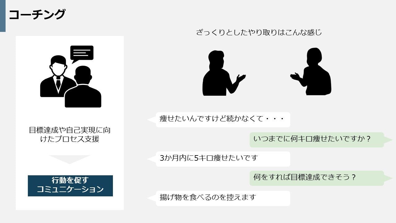 その人に合わせた方法で目標達成へと導くことがコーチングです。