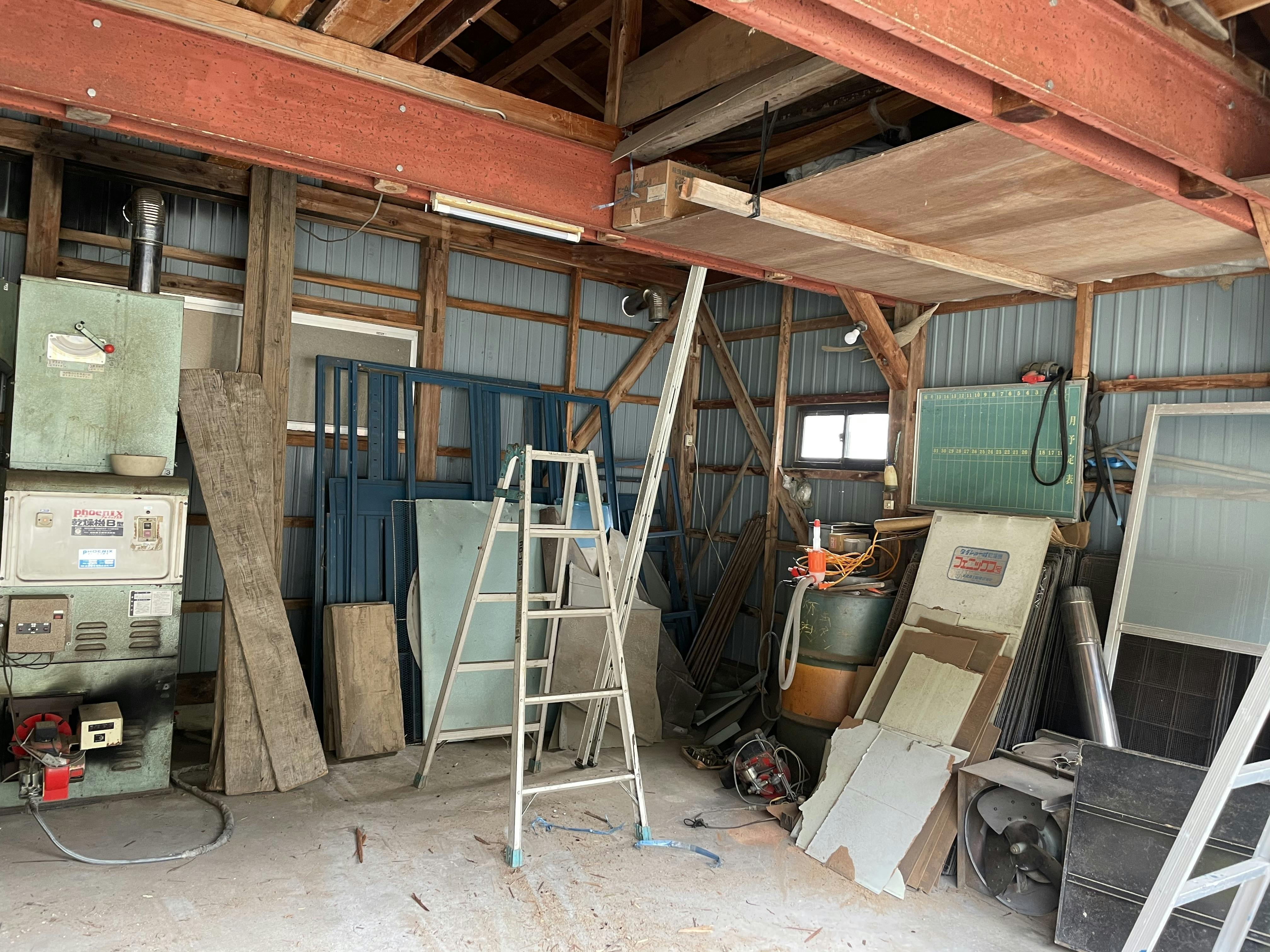 まずは、原木しいたけの乾燥機が2台あるので解体して他の倉庫へ移動し、不要な物を取り除く作業です。