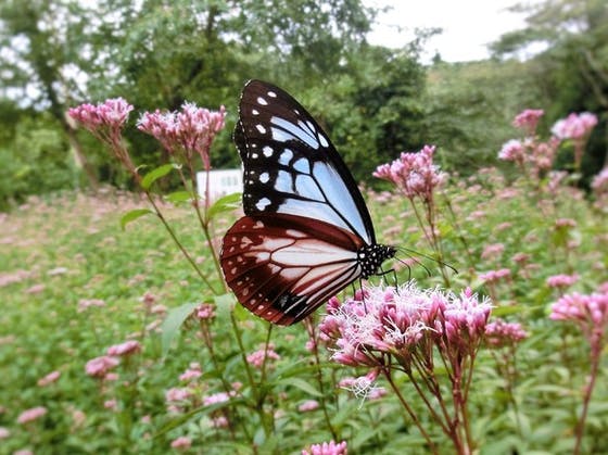 10月上旬には渡り蝶(添付写真)の「アサギマダラ」もやってきます。
