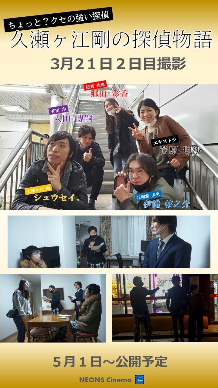 三日目の撮影無事に終わりました!順調の撮影!この日は花爾雅 未来役の伊能 佑之介さんがクランクアップしました!とても個性的な演技をしてくれる彼の花爾雅ワールドを映像で公開できるのをお楽しみください!今回は外ロケでしたが、役者の皆さんとても元気で楽しい撮影になりました!そして本日4/2最終撮影!良い作品ができそうです!NEONS Cinema平岡