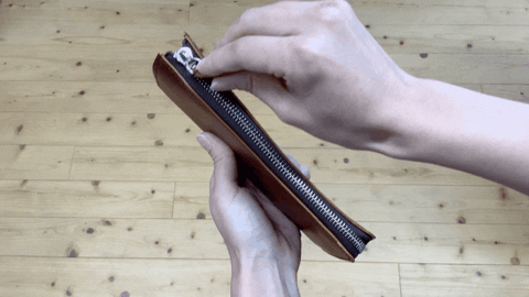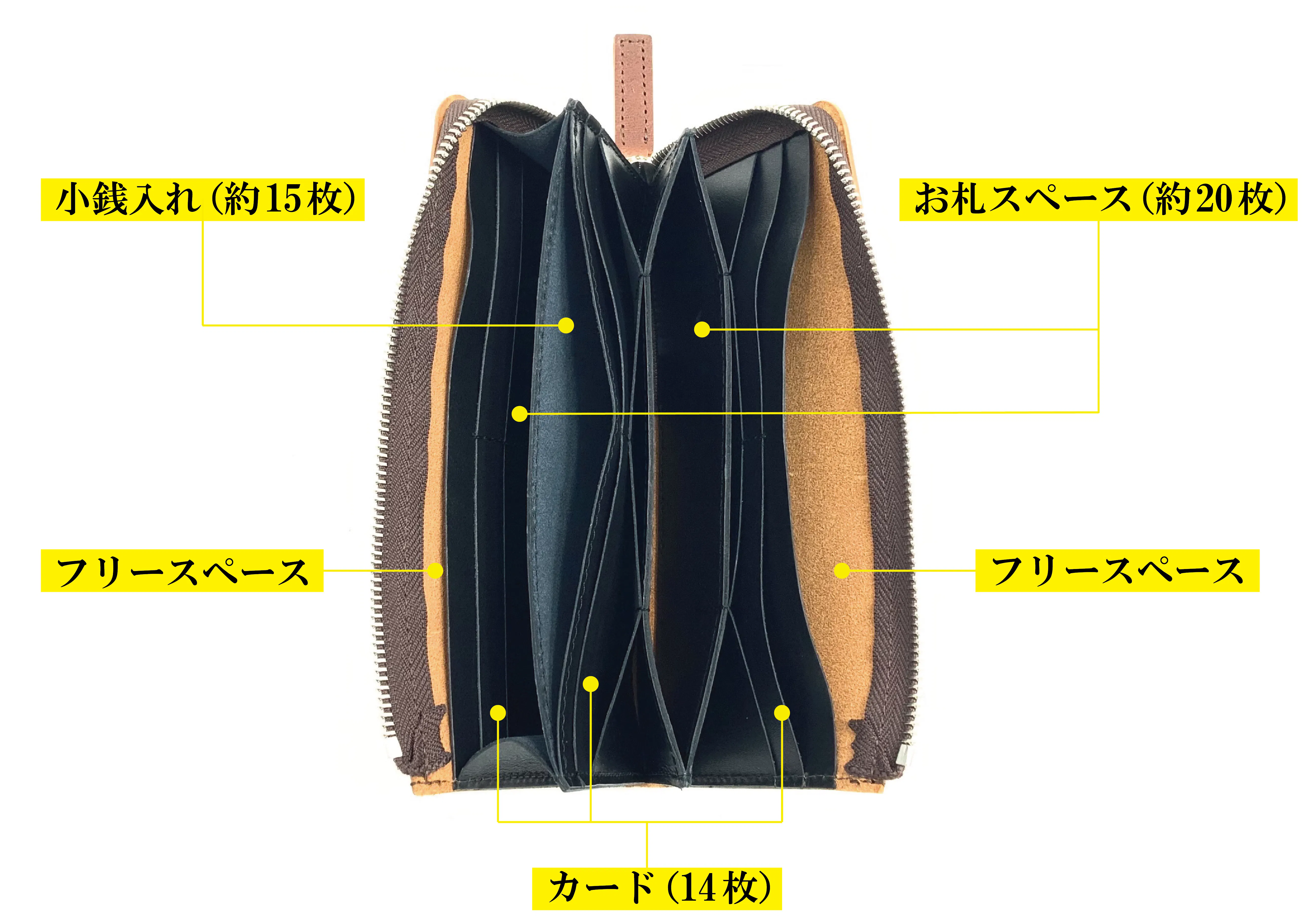 お札ぴったりのサイズと容量の多さと革の質に拘ったL型のファスナー財布。