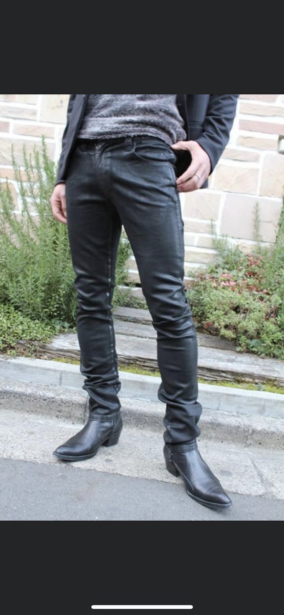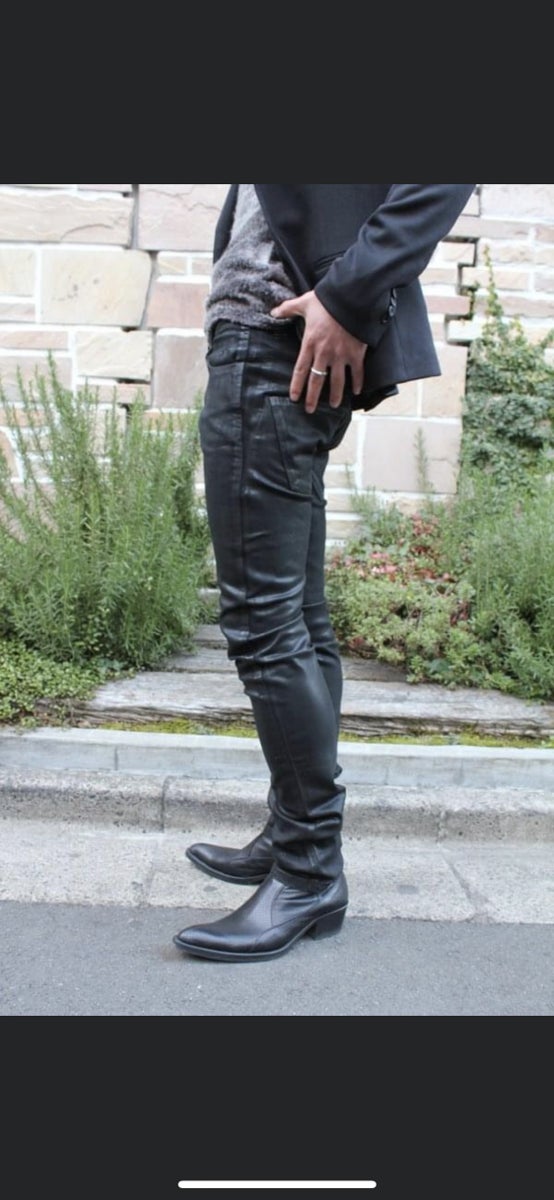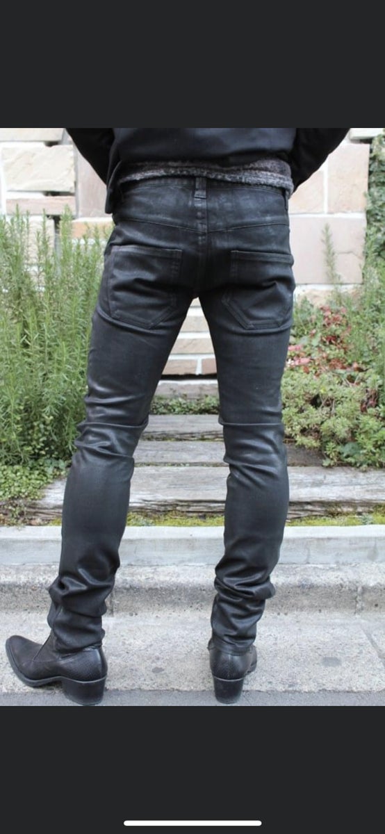 Black OILコーティングバイカーデニム。