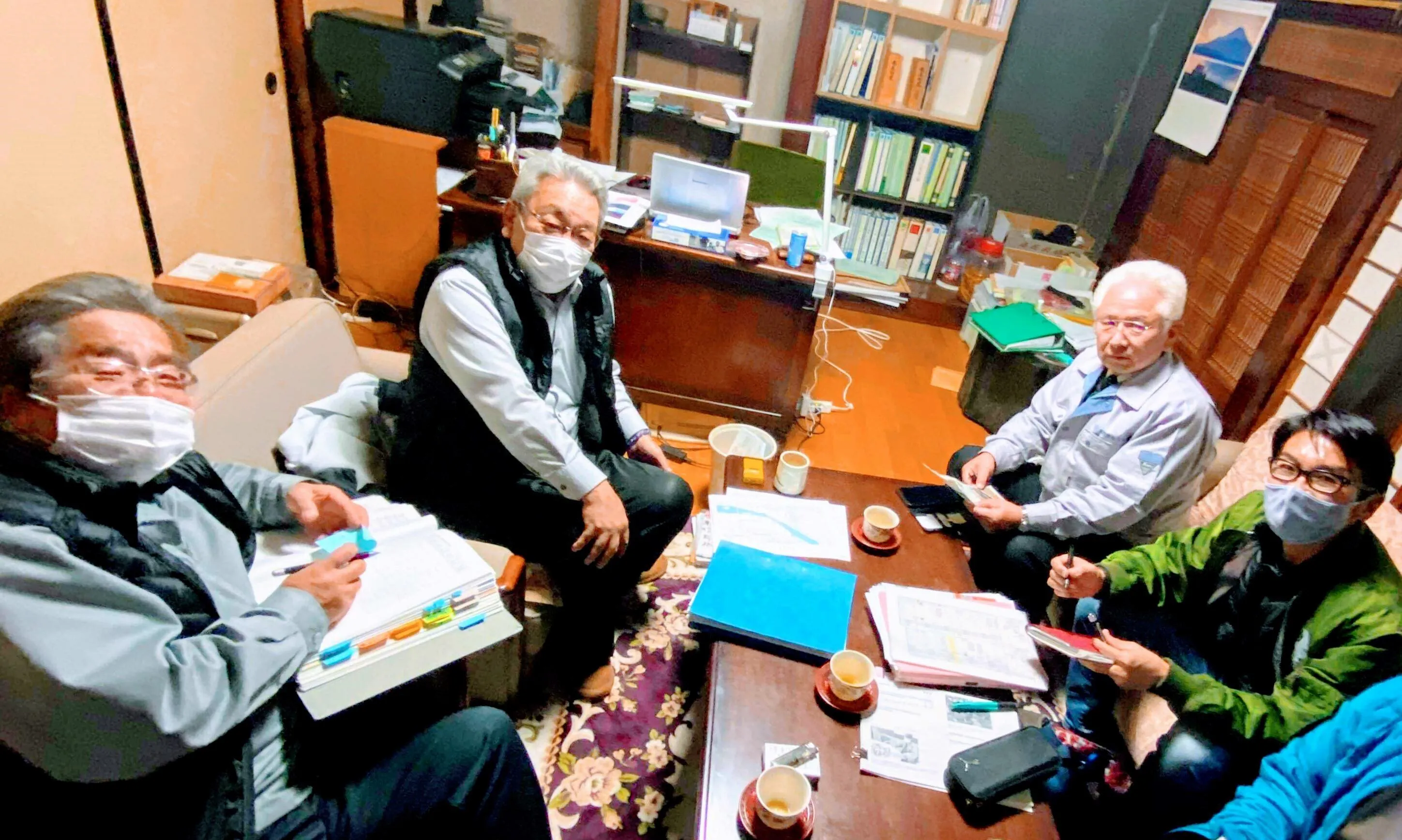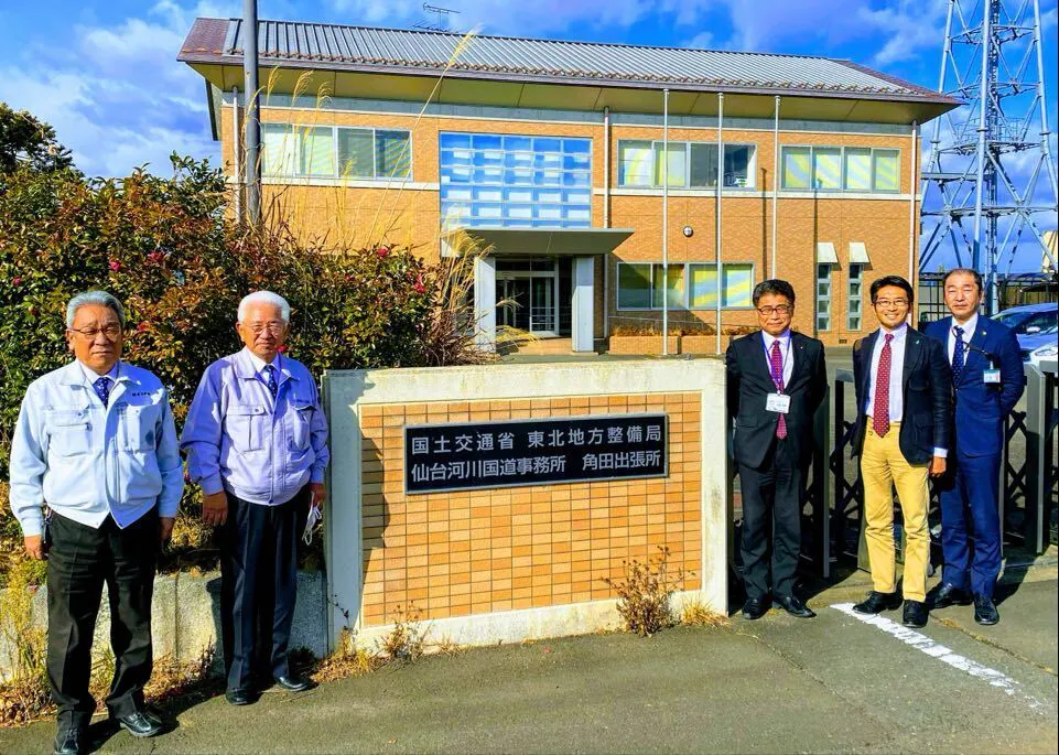 『左から春日部社長、横山会長、八島県議会議員、太見、宍戸課長(丸森町役場)。国交省と打合せ後の様子』