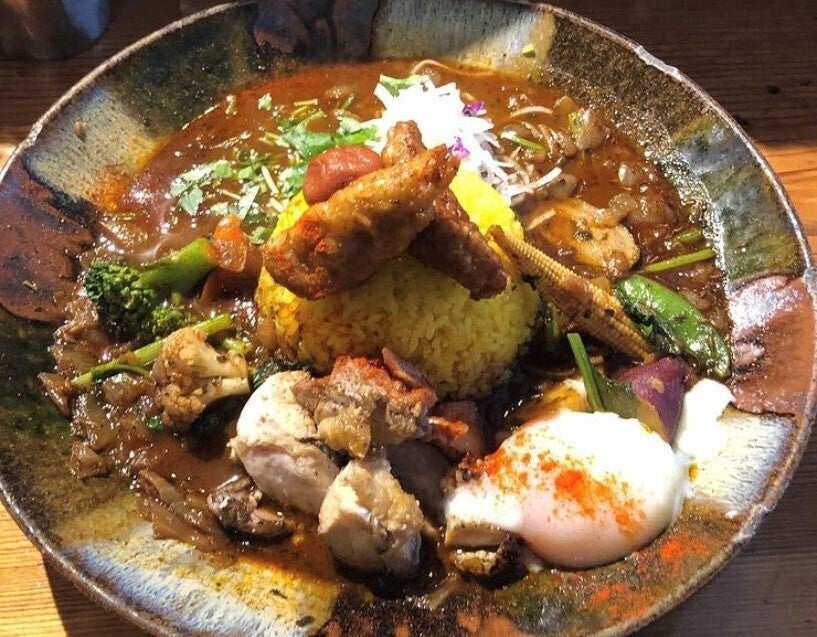 今年で41歳になる店主は、20歳の時にスパイス料理に魅了され、当時サラリーマンとして働いていた岡山で仕事の休みの度にカレー屋を食べ歩いていました。その当時、行きつけだったのカレー屋のチキンカレーがとにかく美味しく、通いつめて発見した一つの気づきは、「そうか!カレーに一番大事なのは、素材からでる出汁※なんだ!」ということでした。(出汁と聞くと鰹節や煮干し、昆布など乾物からとるお出汁をイメージしやすいですが、ここでは肉や野菜などからでるスープの意味です)