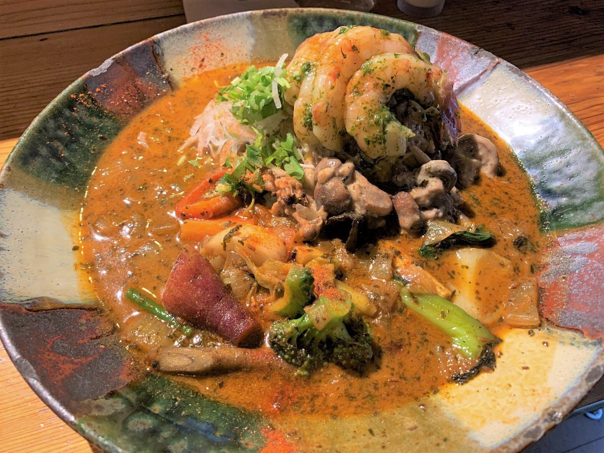 そして、自分の一番の強みとなった「素材を生かした出汁(スープ)」を主役にし、「野菜」をもう一つの主役にしたカレーを作るという自分の方向性が確立し、長い年月を経て遂に「スープカレーなっぱ」が誕生しました。