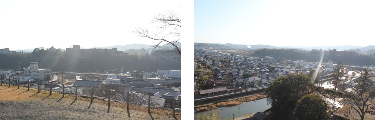 三の丸からの吉井川方面(左)二の丸からの城東地区方面(右)