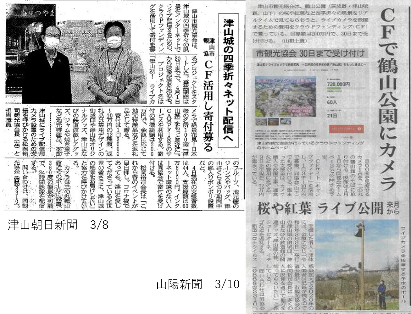 目標額の2,000,000円にむけて地元メディアからもご協力いただき、3月8日の津山朝日新聞、3月10日の山陽新聞に記事が掲載されました。