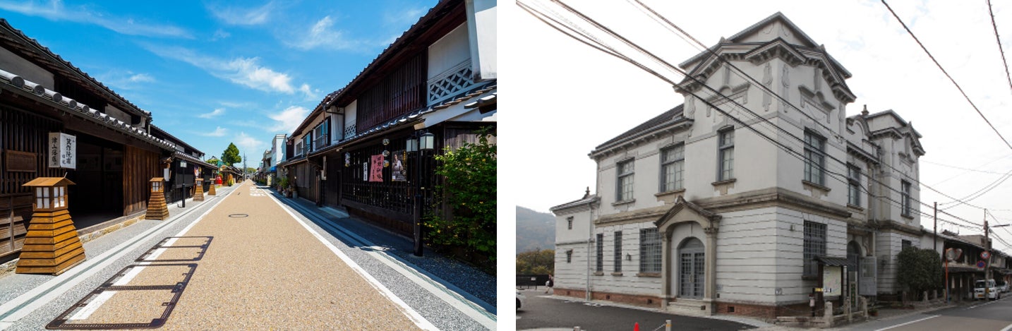 重要伝統的建造物群保存地区 城東地区町並み(左) 城西地区作州民芸館(右)