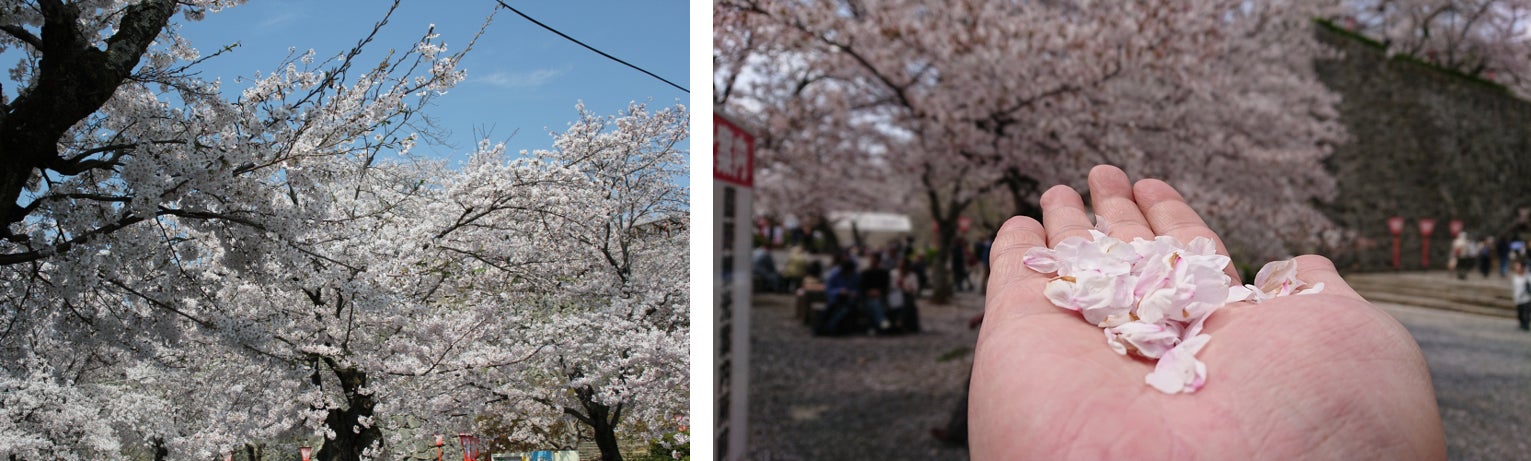 実はライブカメラの設置は2年前くらいからお城で働くスタッフのあいだでは何度か話題にあがっていました。というのも、手入れの甲斐があってか本当に春の「桜」が絶好調なんです。ボリュームたっぷりでふんわりと、いつもより長く咲き誇る。散るときの「桜吹雪」も、思わず「うわ~」って声の出るような。「この景色をタイムリーにお届けするにはどうすればいいの?」を考えだしました。