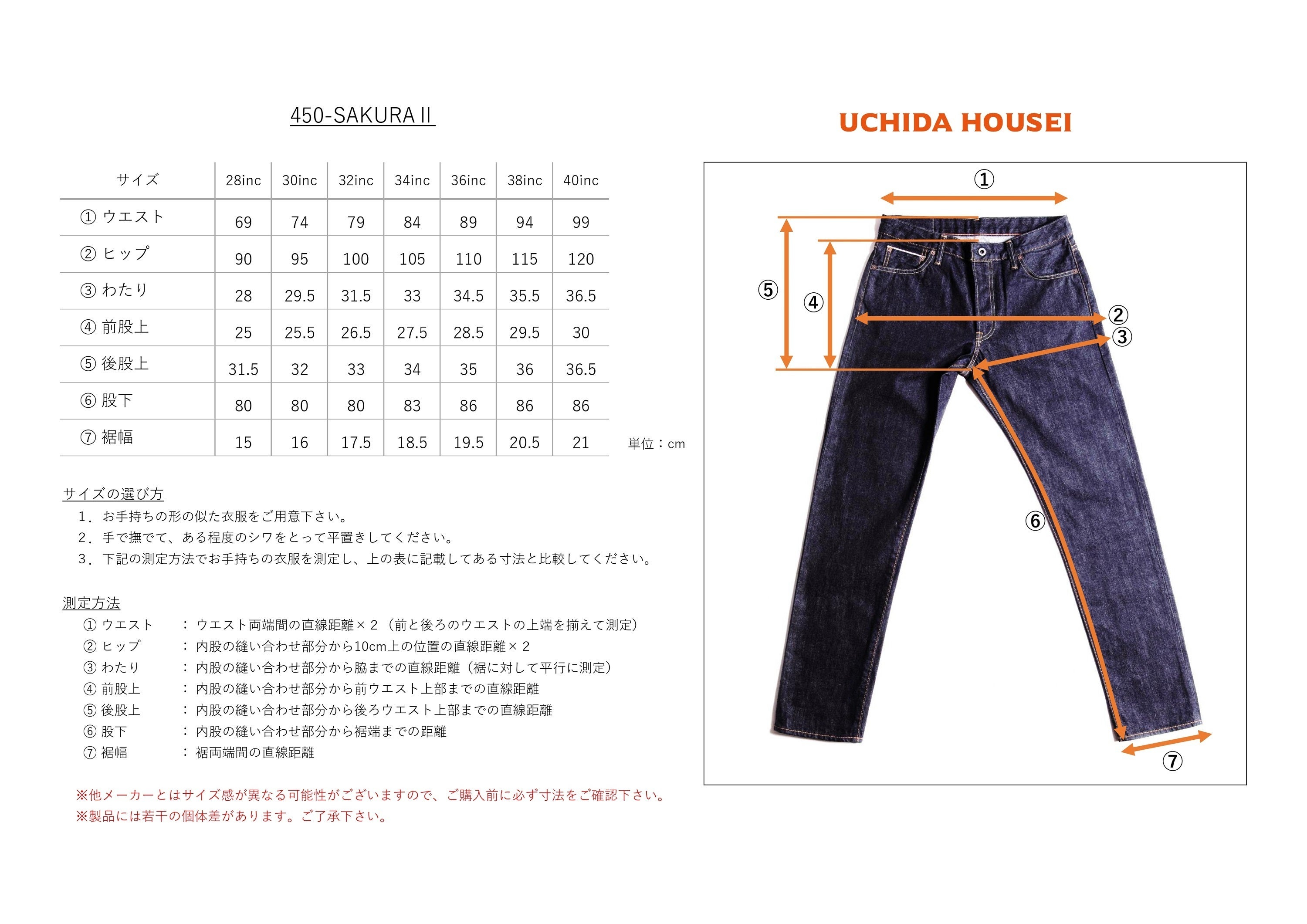 SAKURAⅡ サイズ展開表