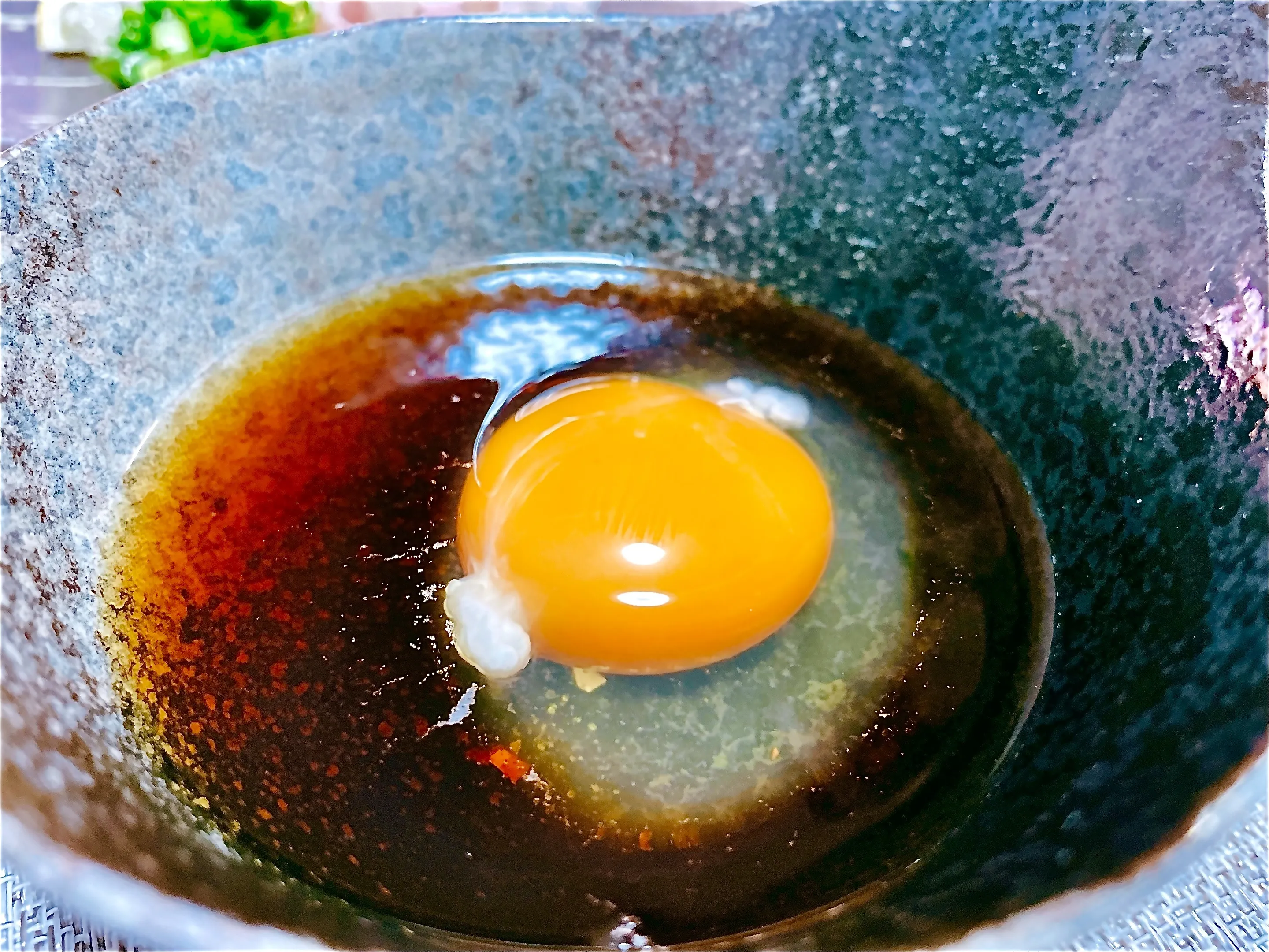 ①自家製のタレと卵を混ぜます。