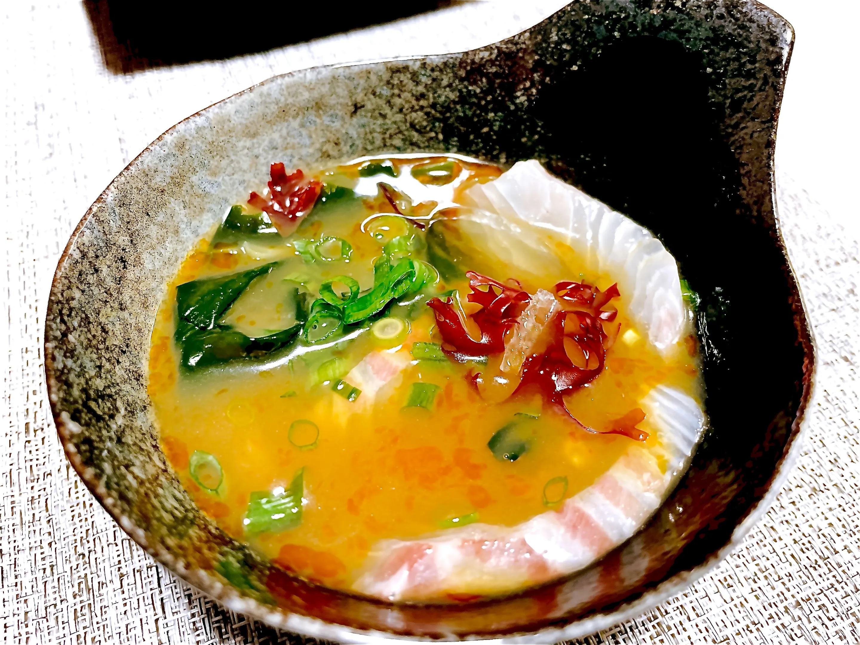 ②新鮮な鯛の刺身とたっぷりの薬味をタレに絡ませます。