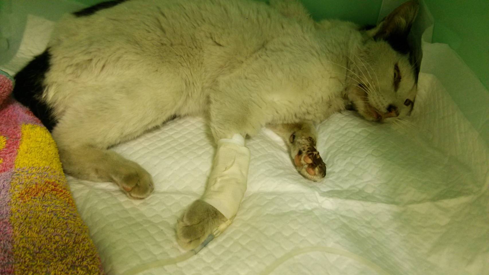 この子は車に跳ねられたらしく近所の方が段ボールに入れてあるからみてほしいと連絡あり 病院手術治療その後里親さん見つかりました