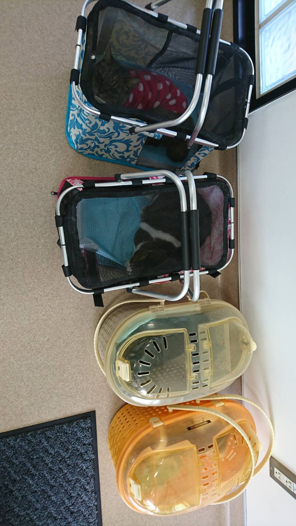 4にゃんこ受診してきました。おばぁちゃん猫達です。歯もないボロボロですが保護した時より体重も増えて投薬今回内服薬は無しでいけました。。ノミマダニのお薬処方してもらいましたが。。後16匹ノミマダニお薬出してもらいます。。。