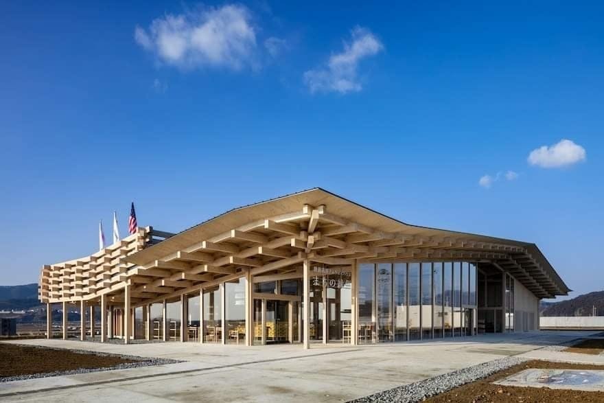 下の写真は陸前高田に昨年オープンした文化交流施設「まちの縁側」だが、柱や梁に地元の名産気仙スギを使ったこの建物は新国立競技場を手がけた隈研吾さんが設計した。そしてもうお分かりだろう。この見事な材木を伐り出したのは直志さんなのである。墓石と墓石の間に木を伐り倒せる超のつくスゴ技は今も健在なのだ。3月のトークではきっと皆さんに溢れんばかりの元気と勇気を与えてくれるだろう。
