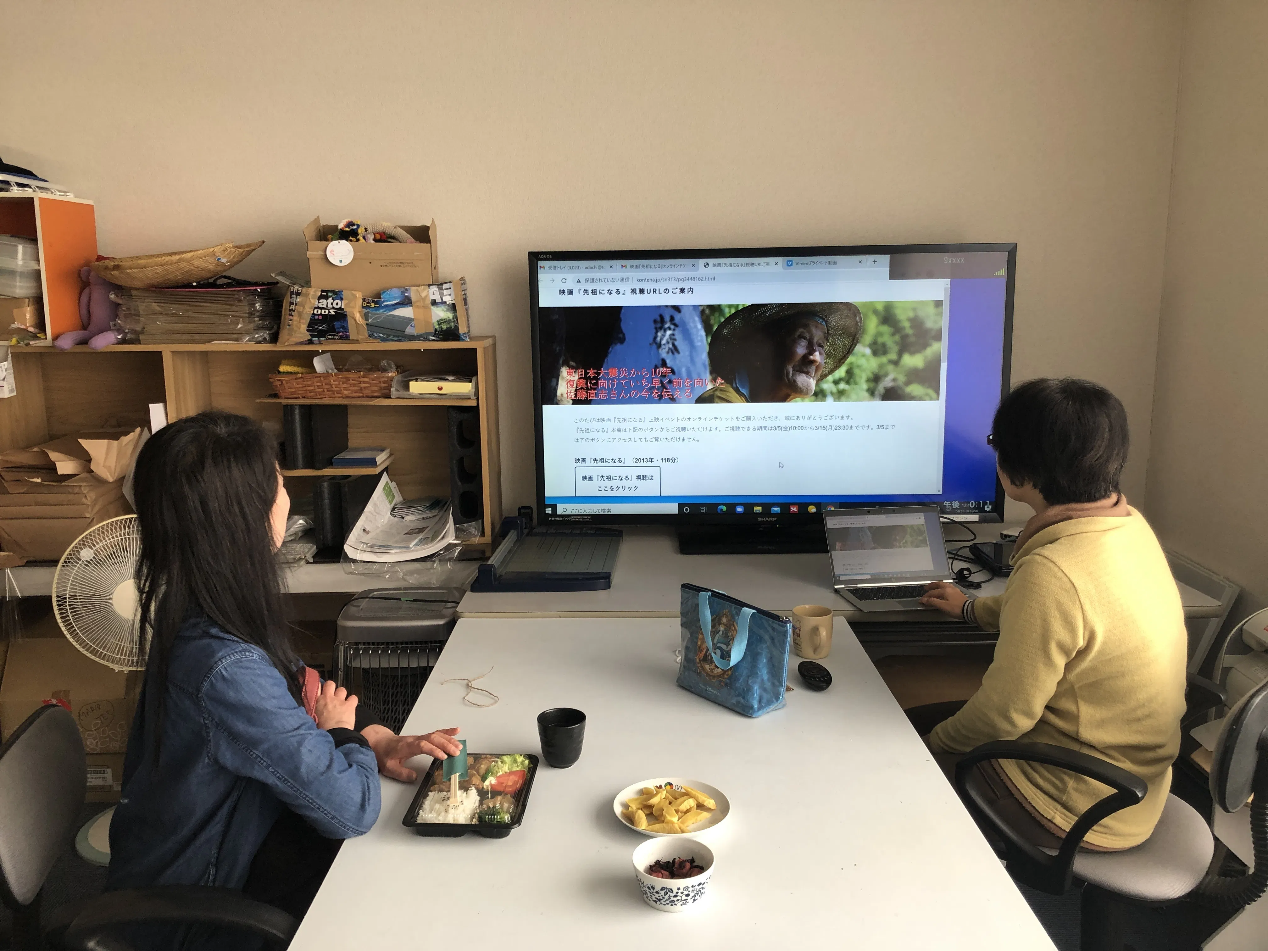 2021/03/05 21:58今日から、オンライン上映がはじまりました!クラウドファンディングに参加してくださったYさんと一緒に映画を観ました。ついついネタバレしそうになったり、「アダチ目線」だと「ここのシーンの裏側は・・・」とか、解説しちゃいますね。先日、直志さんのご自宅に一緒に行ったスタッフOも、「この前見たきれいな町のもとの姿は・・・」と、思いがつまったようです。震災からまもない時期に、直志さんが言った言葉。それは10年経ったいまの町に、どう響くのか・・・。10年という区切りで話をするのはどうなのか。とも思います。それでも、世の多くの人が10年という区切りで東北の事を思うのなら、東北に暮らすものとしてこの10年、力強く生きている直志さん剛さんの在りようを、全国のみなさんにお伝えしたい。そう思います。オンラインチケット、販売中です。クラウドファンディング参加できなかった方はぜひ、下記よりお買い求めください。↓映画『先祖になる』上映イベント もっと見る