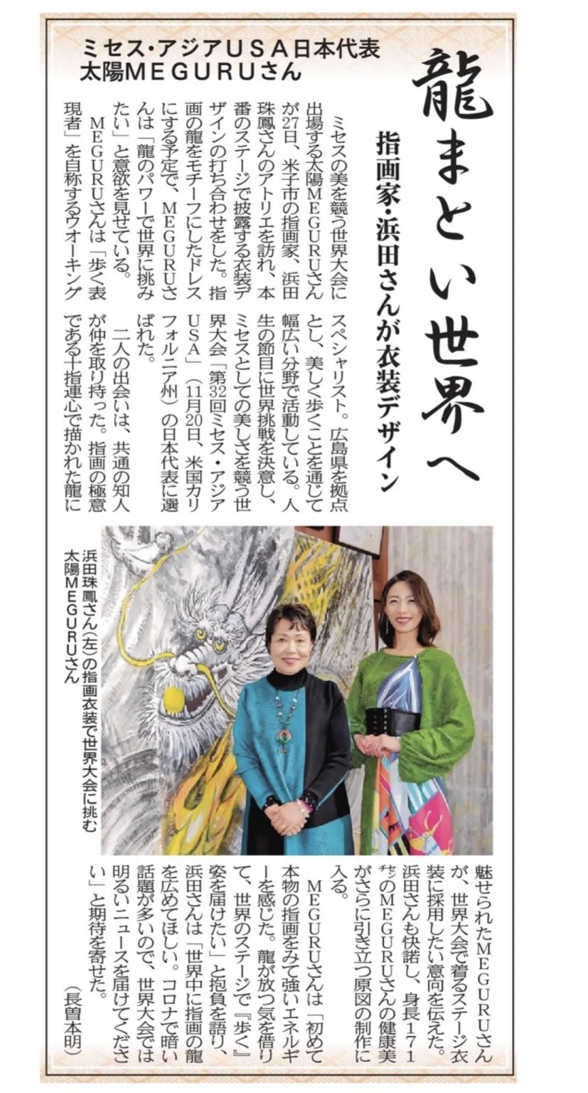 濱田先生の描く龍をまとい、TAOさんの手から創作される衣装で世界大会の舞台に立てること、
