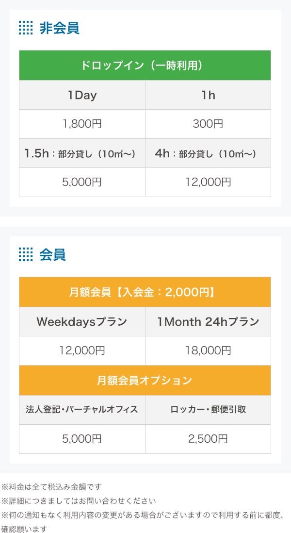 見学を兼ねてコワーキングスペース一日体験を無料で行っておりますので興味のある方はホームページ問い合わせフォームより「住所・氏名・フリガナ・連絡先」を記載し、利用規約を確認の上ご連絡下さい。