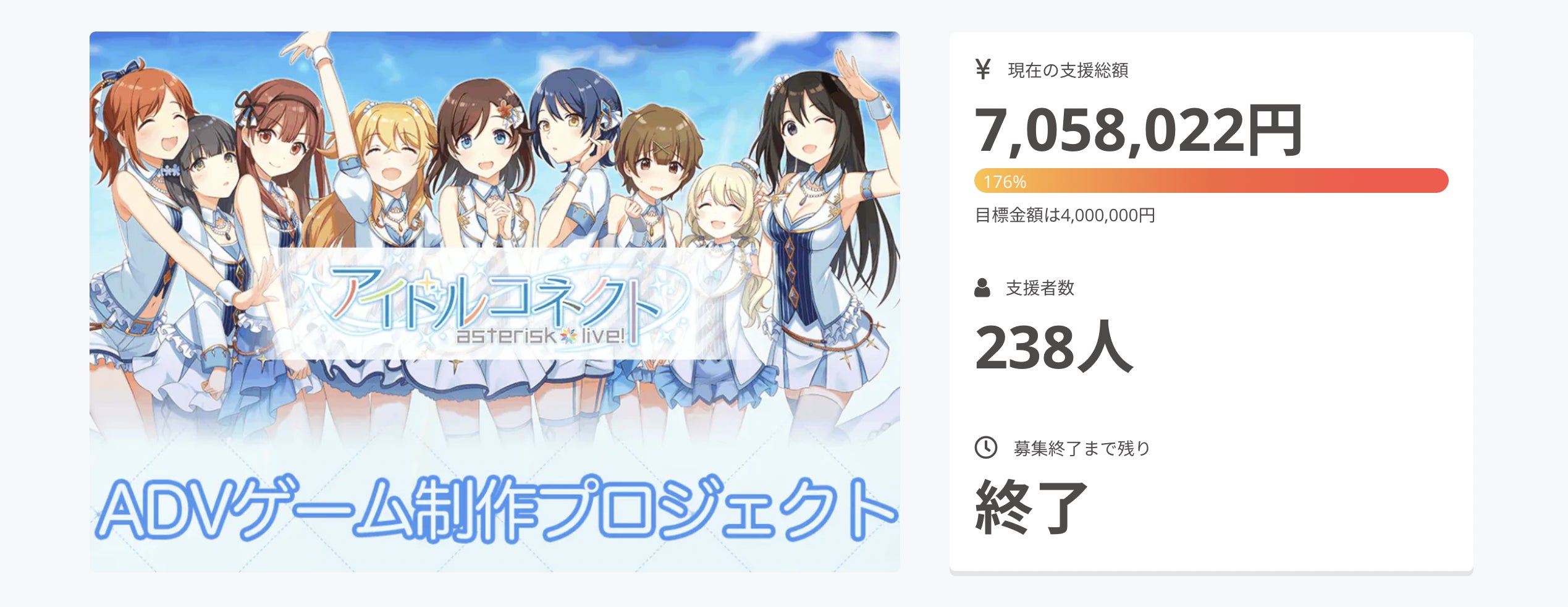 最終ご支援総額:7058022円