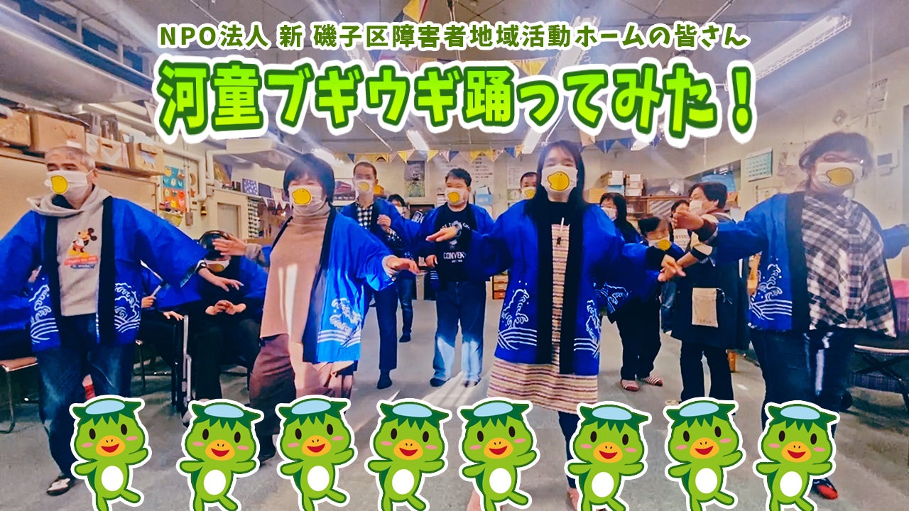 先日公開された第一弾は、NPO法人 新 磯子区障害者地域活動ホームの皆さんの踊ってみた!マスクごしからもわかる笑顔、そして何よりも皆さんで楽しんでいる姿、最高です!!揃いの法被もとっても似合っていますね!クチバシマスクもかわいいです。素敵な「河童ブギウギ」をありがとうございます!
