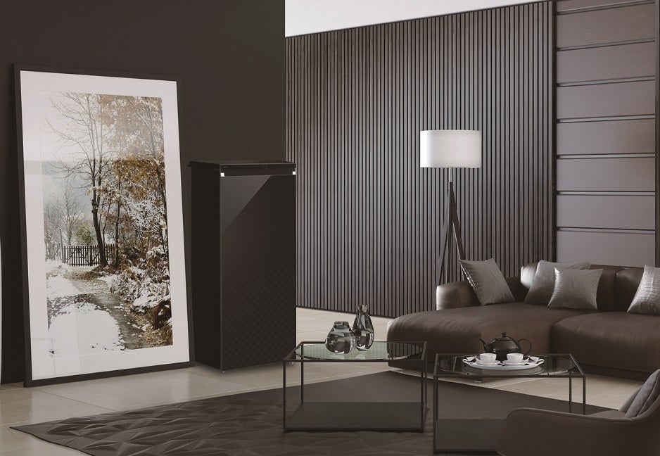 黒基調のインテリアとしても部屋に溶け込むスタイリッシュなデザインで、前面扉には七宝柄をグラデーション加工。
