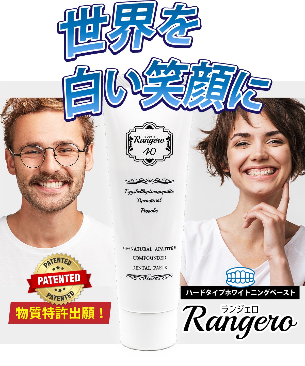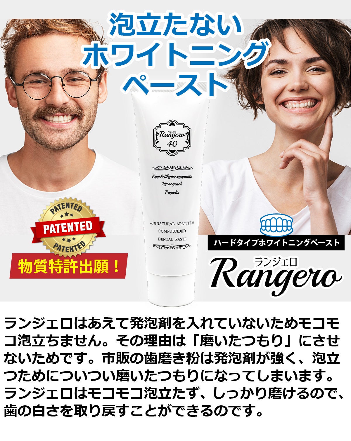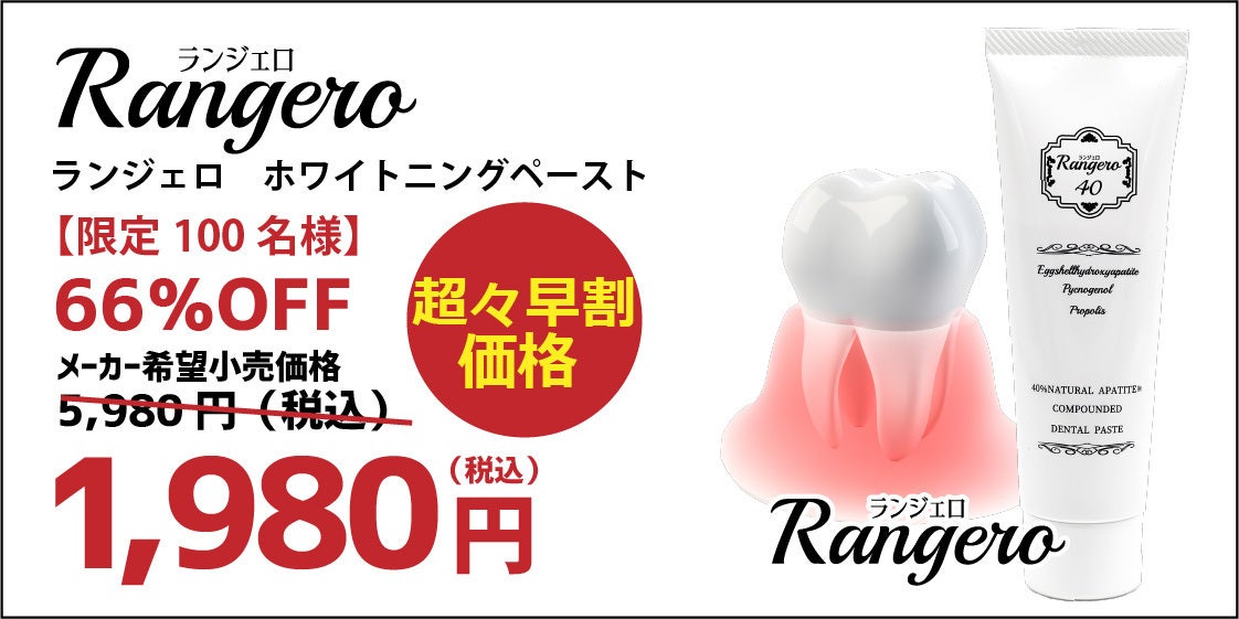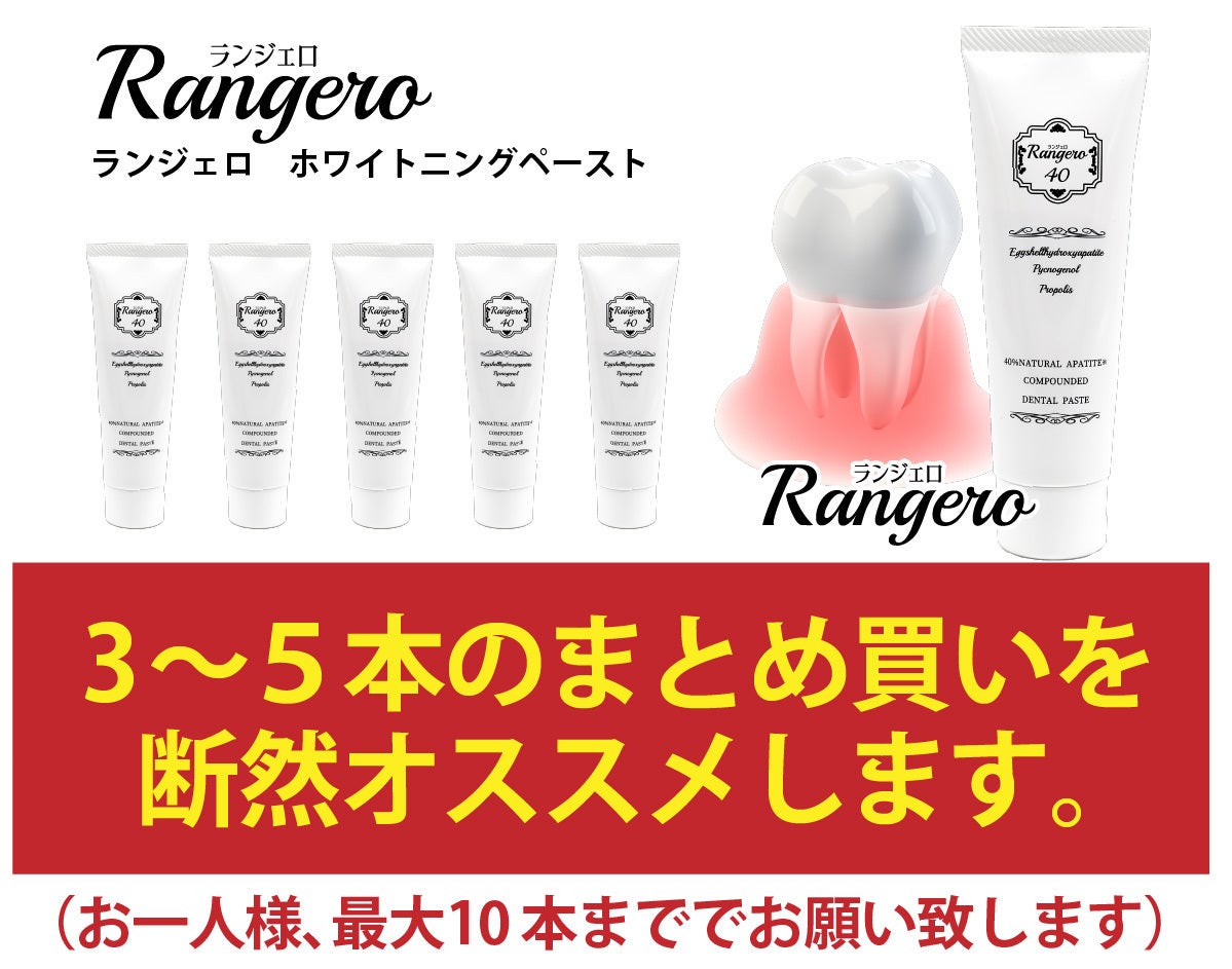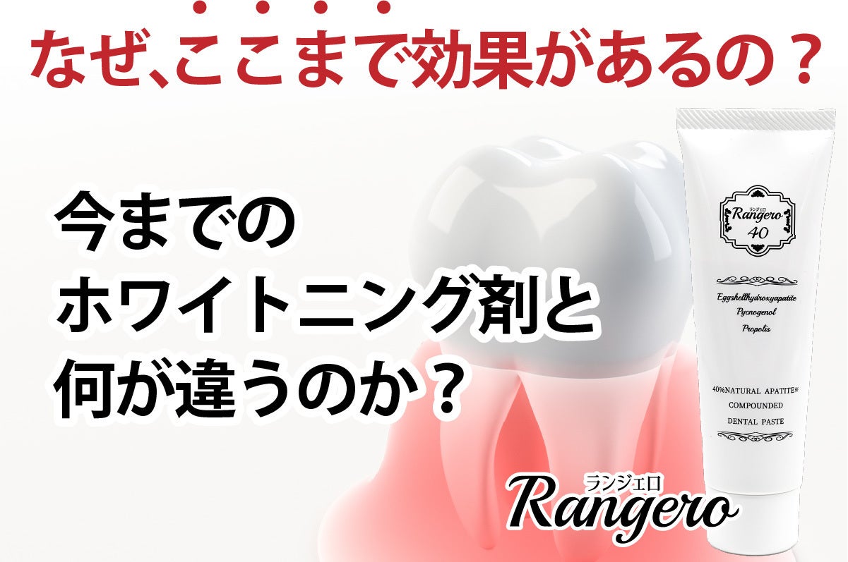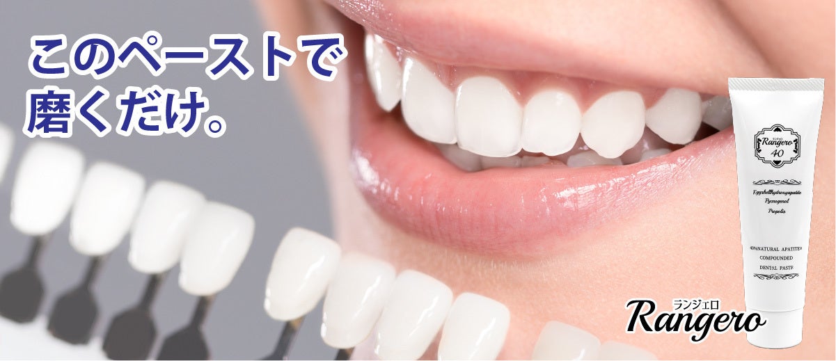 ブランド名:ランジェロトリプルパワーのホワイトニング歯磨き。卵殻アパタイト40%以上。卵殻アパタイトはミネラル分を含み、吸着性に優れています。吸着性が優れていると、虫歯の原因となる歯垢や歯の汚れを、研磨することなく歯を白くします。