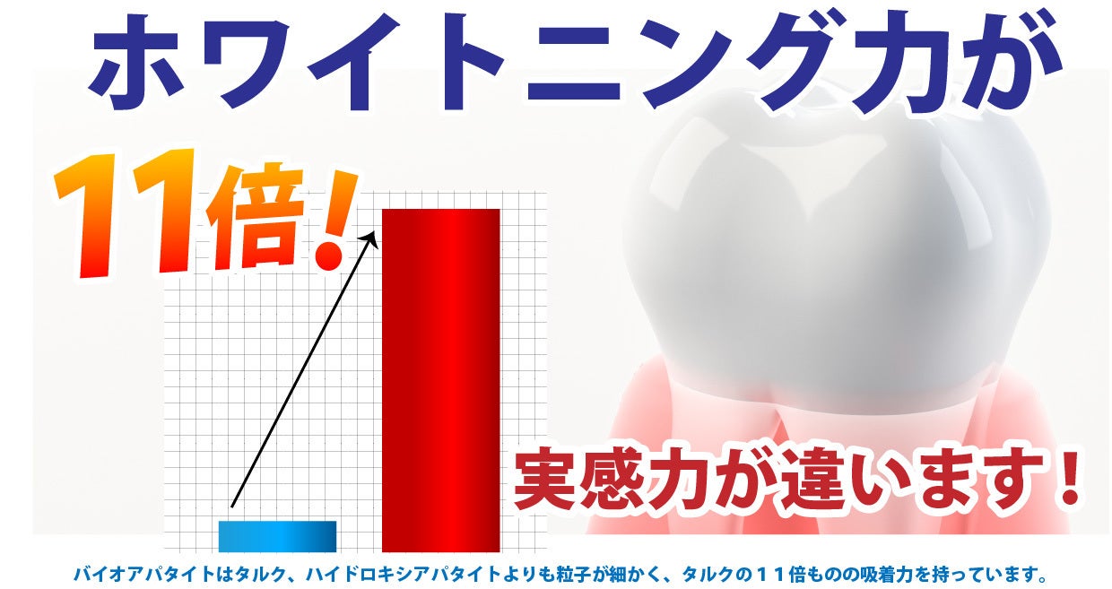 歯磨きは私たちにとって欠かせない習慣です。毎日、毎月、毎年積み重なっていきます。私達はそんな中「本当に歯を白くすること」に本気で取り組んだらどんな歯磨き粉ができるのだろうか?その研究を続け、ここまで2年の歳月がかかりました。技術的にも環境的にも画期的な素材「バイオアパタイト」を練り歯磨きにしました。他の歯磨き粉にはない使用感と実感力を実現できたことは私達の大きな喜びです。