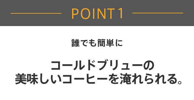 コーヒーを水に浸して成分をゆっくり抽出するので余分な雑味やえぐみ、それに酸味が抑えられ、簡単にプロ顔負けのコーヒーを淹れられます。
