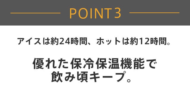 アイスであれば約24時間、ホットなら約12時間も中のコーヒーの温度を保てます。