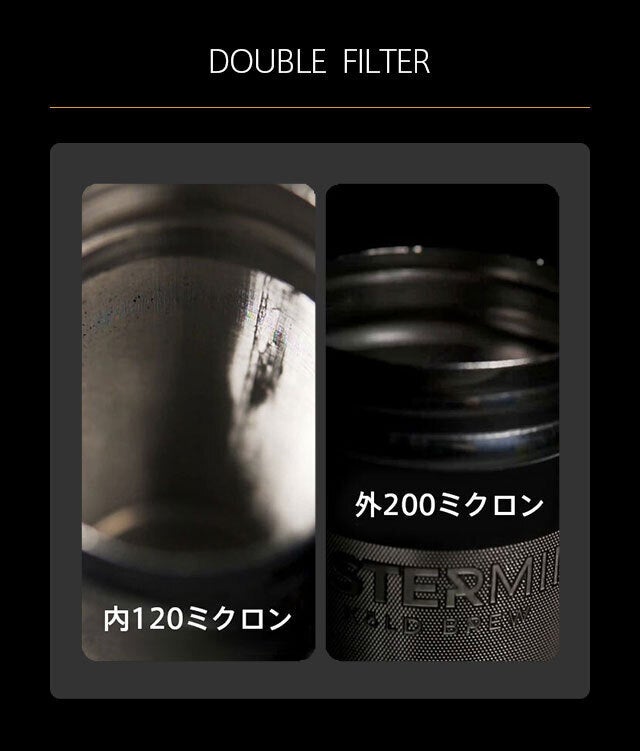【Mastermind】のコールドブリューは内120ミクロン、外200ミクロンのWフィルターを採用。
