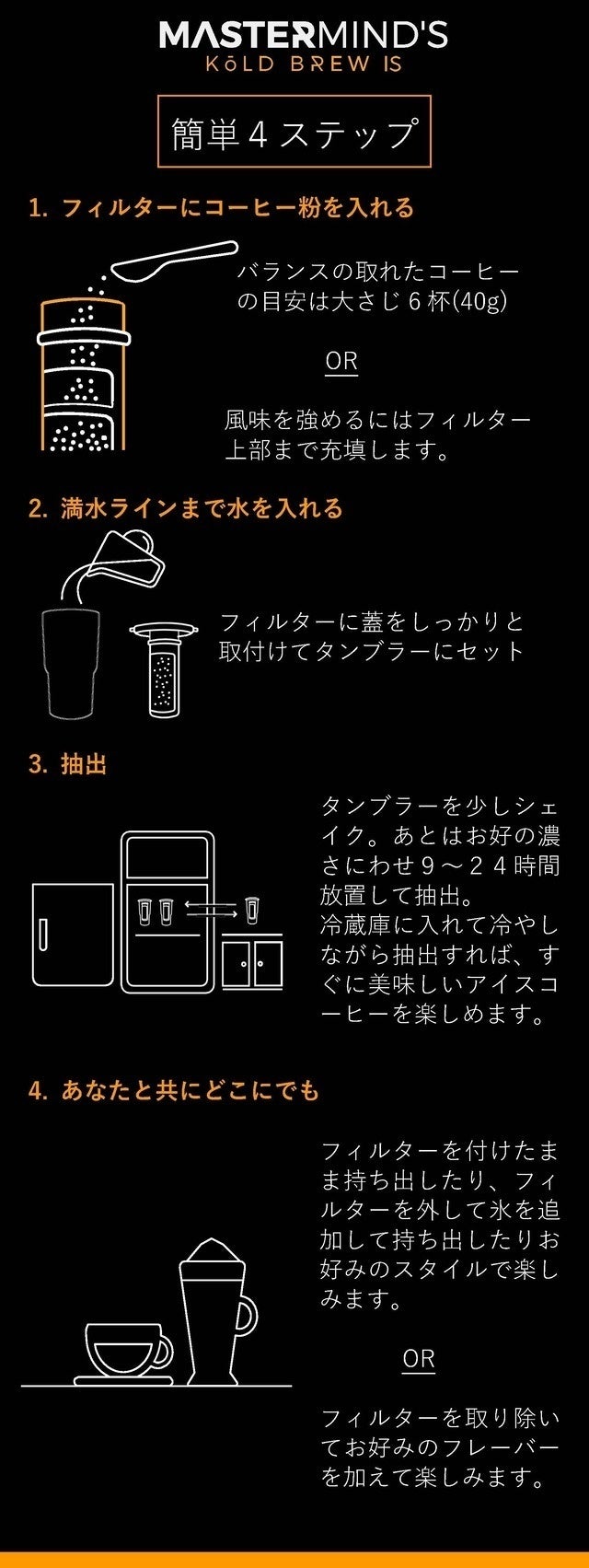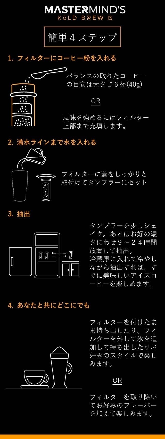 【Mastermind】のコールドブリューはどこでもあなたに美味しい水出しコーヒーをお届けします。