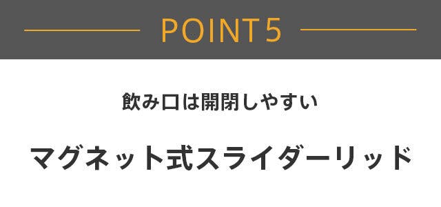 A:横倒しにするとマグネット式スライダーリッドから液漏れするため、横倒しでの保管や持ち運びはしないようお願いいたします。