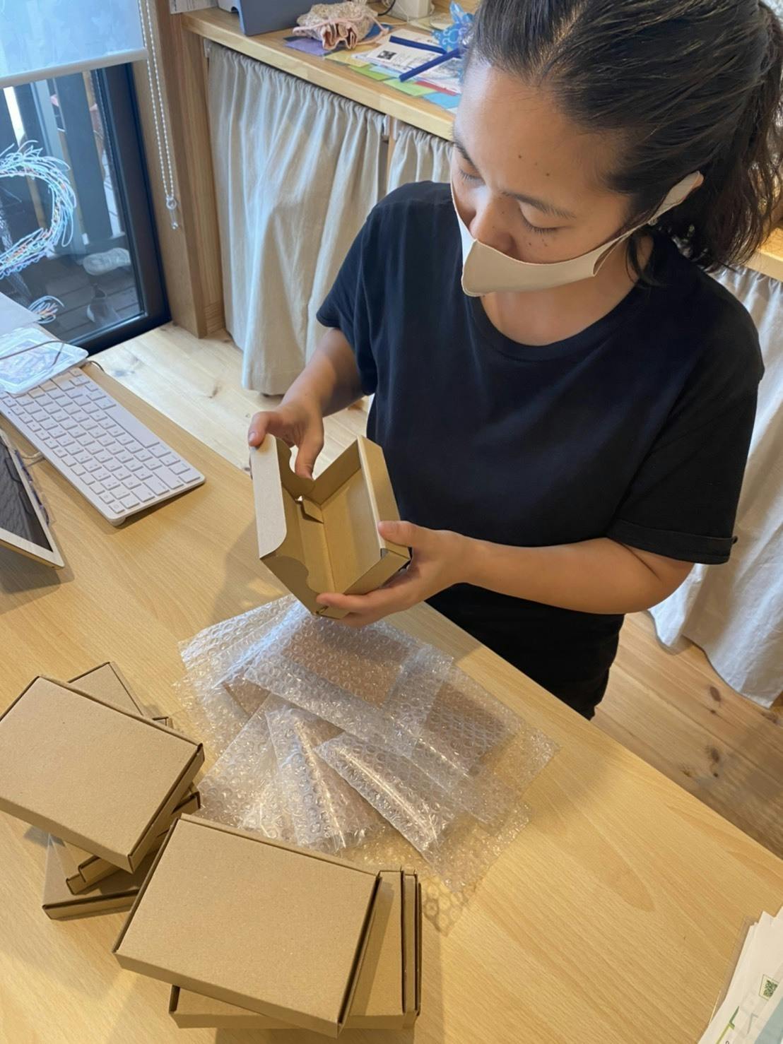 写真は「アクセサリー」のリターンの送付準備の様子です。