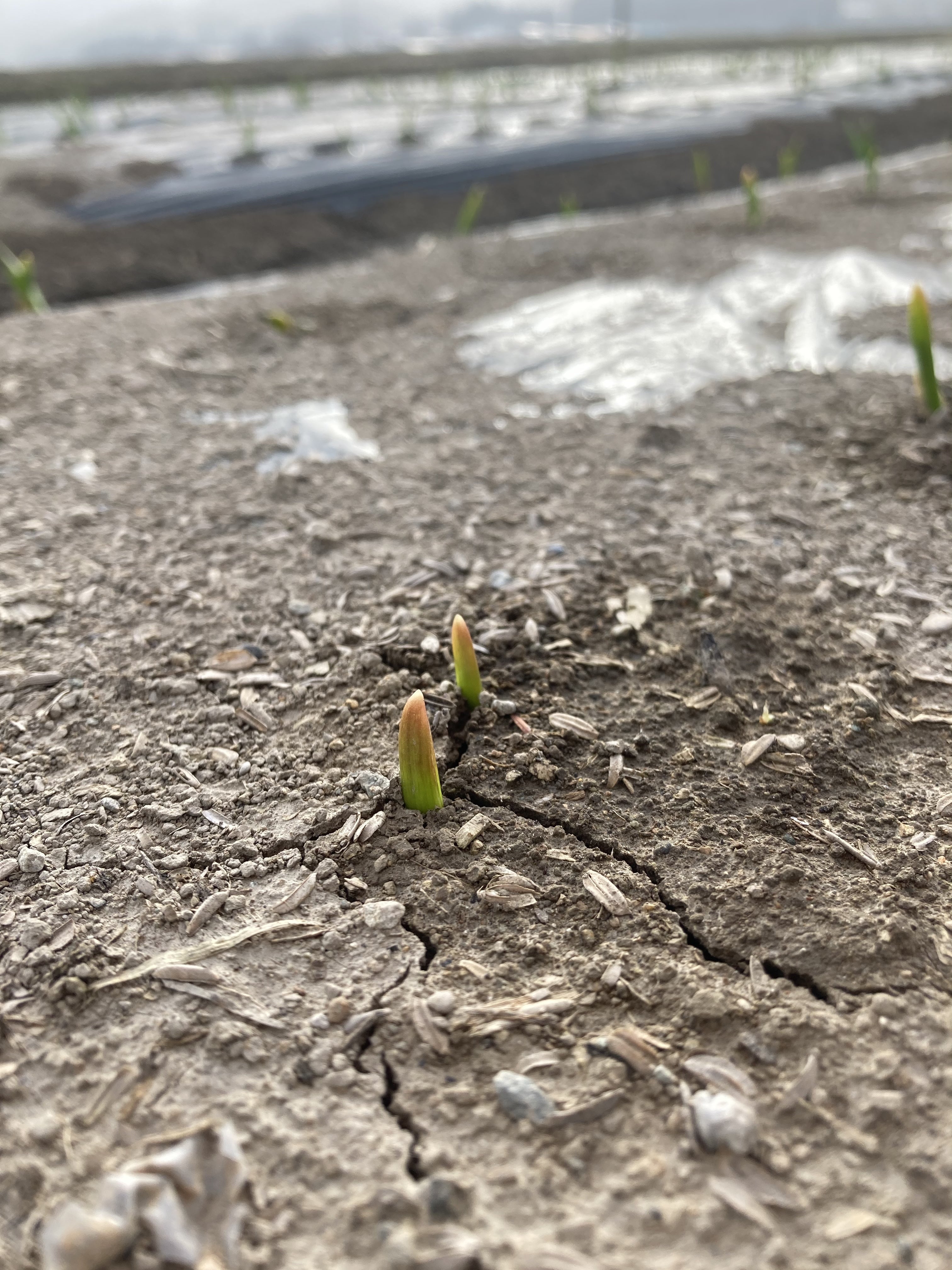 最上赤ニンニクが芽を出してきました^o^!明日、春一番の葉面散布をします(^^)