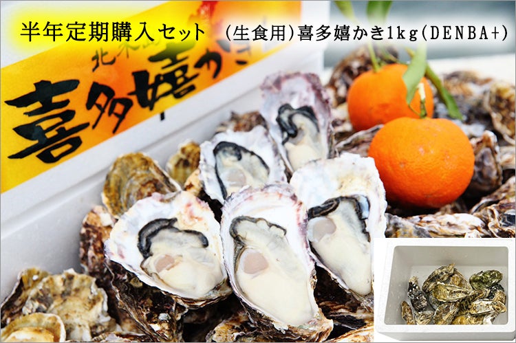 ⑦ 29,000円:(生食用)喜多嬉かき 半年定期購入セット 喜多嬉かき1kg×半年間(DENBA+)
