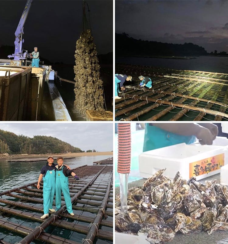 初日の今日は朝の5時から今季初の牡蠣の水揚げに行ってきました!
