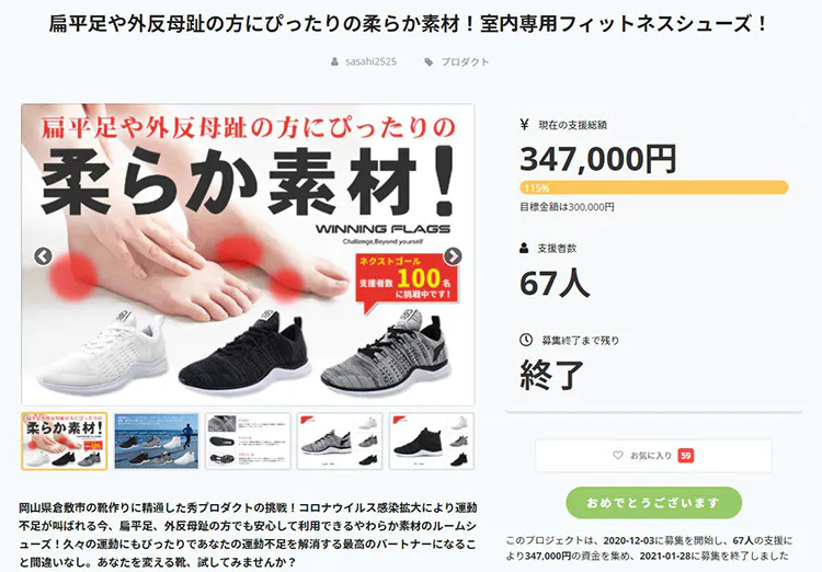 たくさんあるプロジェクトの中から足袋スニーカーのプロジェクトを見て頂き、