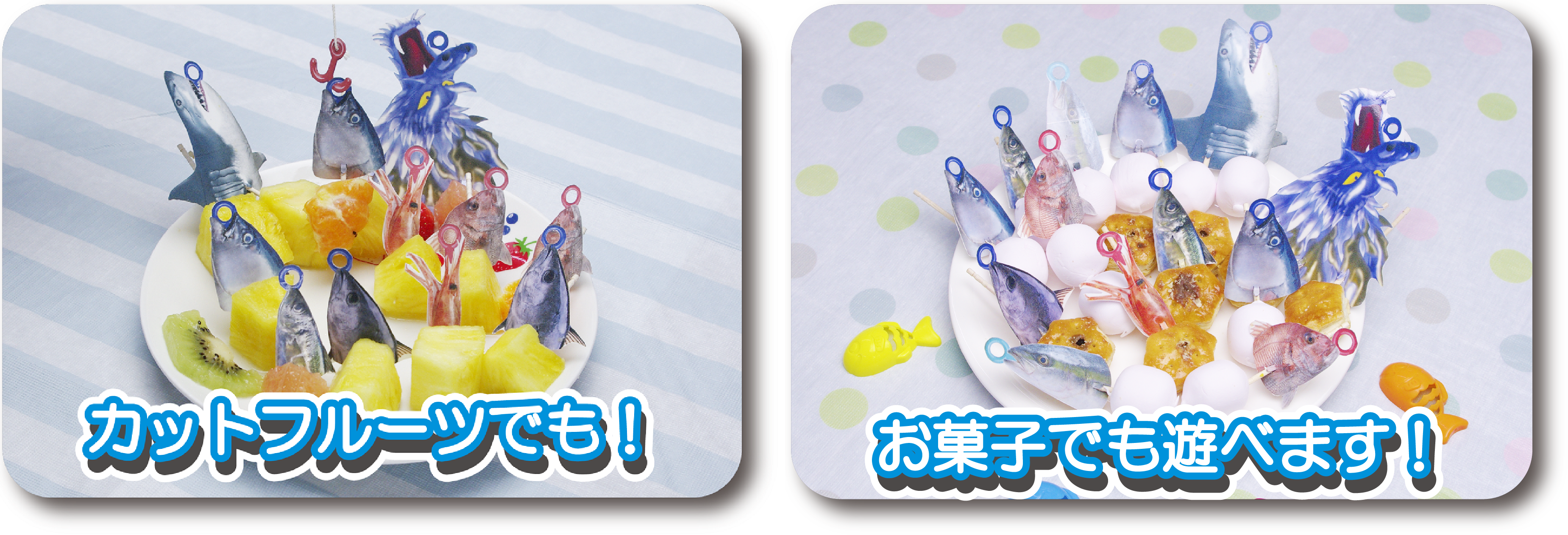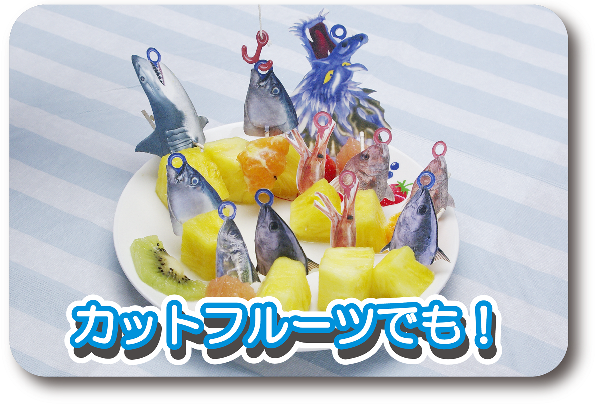また、お刺身だけに限らず、カットフルーツやミニカステラなど、子供が喜ぶ食材を付けて釣りゲームを楽しむこともできます。