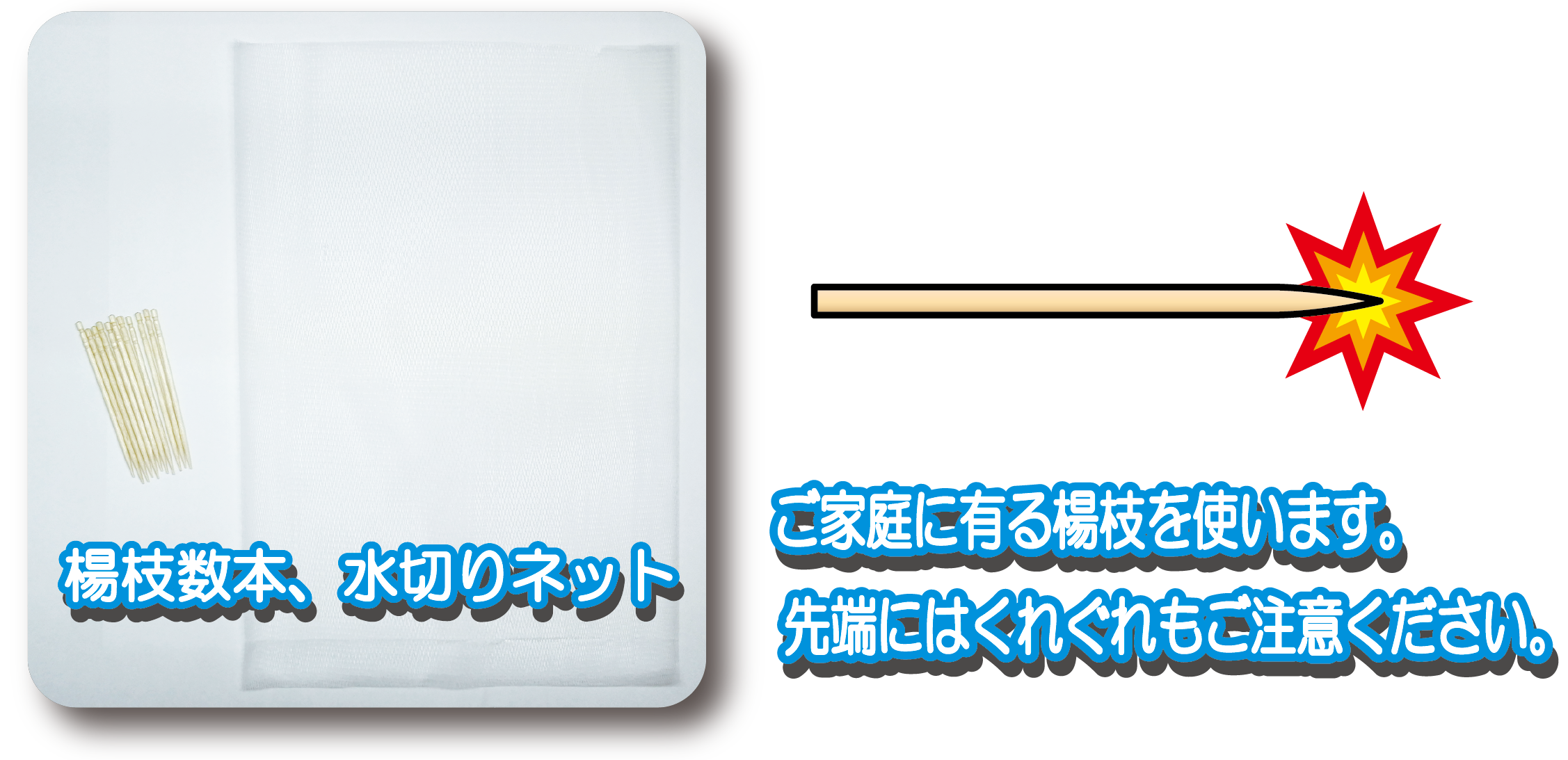 ※ご家庭にある楊枝を使います。刺身に刺す際や食べるときなどは十分にご注意ください。