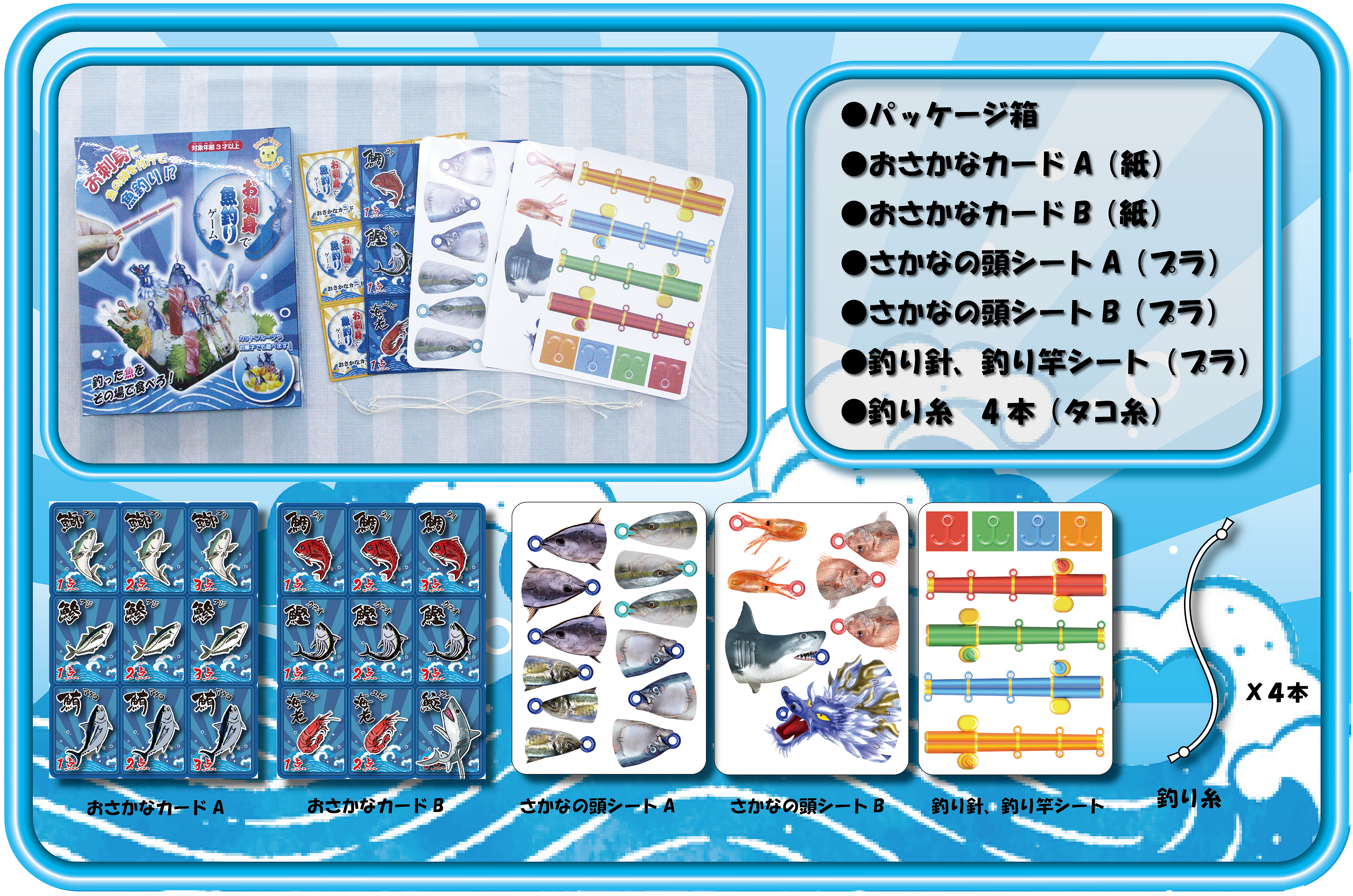 ●パッケージ箱 ●おさかなカードA ●おさかなカードB  ●さかなの頭プラシートA