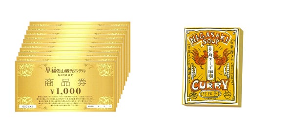 稲佐山観光ホテルグループで食事や宿泊、売店でのお買い物に利用できる商品券とレトルトカレーのセットです。